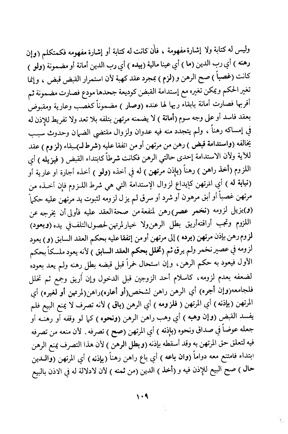(وَإِنْ رَهَنَهُ) أَيْ رَبُّ الدَّيْنِ (مَا) أَيْ عَيْنًا مَالِيَّةً (بِيَدِهِ) أَيْ: رَبِّ الدَّيْنِ أَمَانَةً أَوْ مَضْمُونَةً (وَلَوْ) كَانَتْ (غَصْبًا) صَحَّ الرَّهْنُ وَ (لَزِمَ) بِمُجَرَّدِ عَقْدٍ كَهِبَةٍ ; لِأَنَّ اسْتِمْرَارَ الْقَبْضِ قَبْضٌ، وَإِنَّمَا تَغَيَّرَ الْحُكْمُ وَيُمْكِنُ تَغَيُّرُهُ مَعَ اسْتِدَامَةِ الْقَبْضِ كَوَدِيعَةٍ جَحَدَهَا مُودَعٌ فَصَارَتْ مَضْمُونَةً ثُمَّ أَقَرَّ بِهَا فَصَارَتْ أَمَانَةً بِإِبْقَاءِ رَبِّهَا لَهَا عِنْدَهُ (وَصَارَ) مَضْمُونًا كَغَصْبٍ وَعَارِيَّةٍ وَمَقْبُوضٍ بِعَقْدٍ فَاسِدٍ أَوْ عَلَى وَجْهِ سَوْمٍ (أَمَانَةً) لَا يَضْمَنُهُ مُرْتَهِنٌ بِتَلَفِهِ بِلَا تَعَدٍّ وَلَا تَفْرِيطٍ لِلْإِذْنِ لَهُ فِي إمْسَاكِهِ رَهْنًا، وَلَمْ يَتَجَدَّدْ مِنْهُ فِيهِ عُدْوَانٌ وَلِزَوَالِ مُقْتَضِي الضَّمَانِ وَحُدُوثِ سَبَبٍ يُخَالِفُهُ