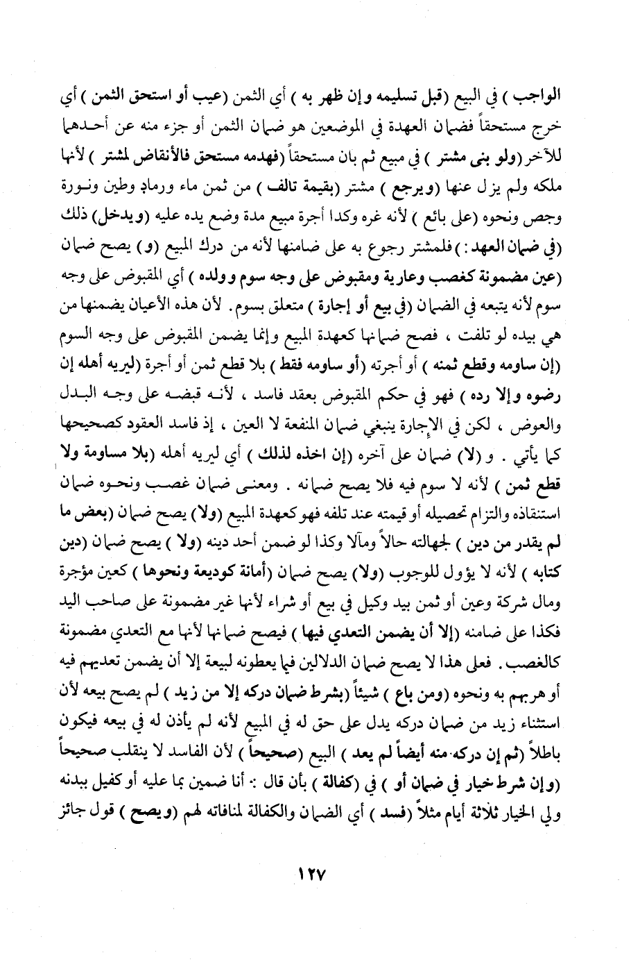 الْوَاجِبَ) فِي الْبَيْعِ (قَبْلَ تَسْلِيمِهِ وَإِنْ ظَهَرَ بِهِ) أَيْ الثَّمَنِ (عَيْبٌ أَوْ اُسْتُحِقَّ الثَّمَنُ) أَيْ خَرَجَ مُسْتَحَقًّا فَضَمَانُ الْعُهْدَةِ فِي الْمَوْضِعَيْنِ هُوَ ضَمَانُ الثَّمَنِ أَوْ جُزْءٍ مِنْهُ عَنْ أَحَدِهِمَا لِلْآخَرِ