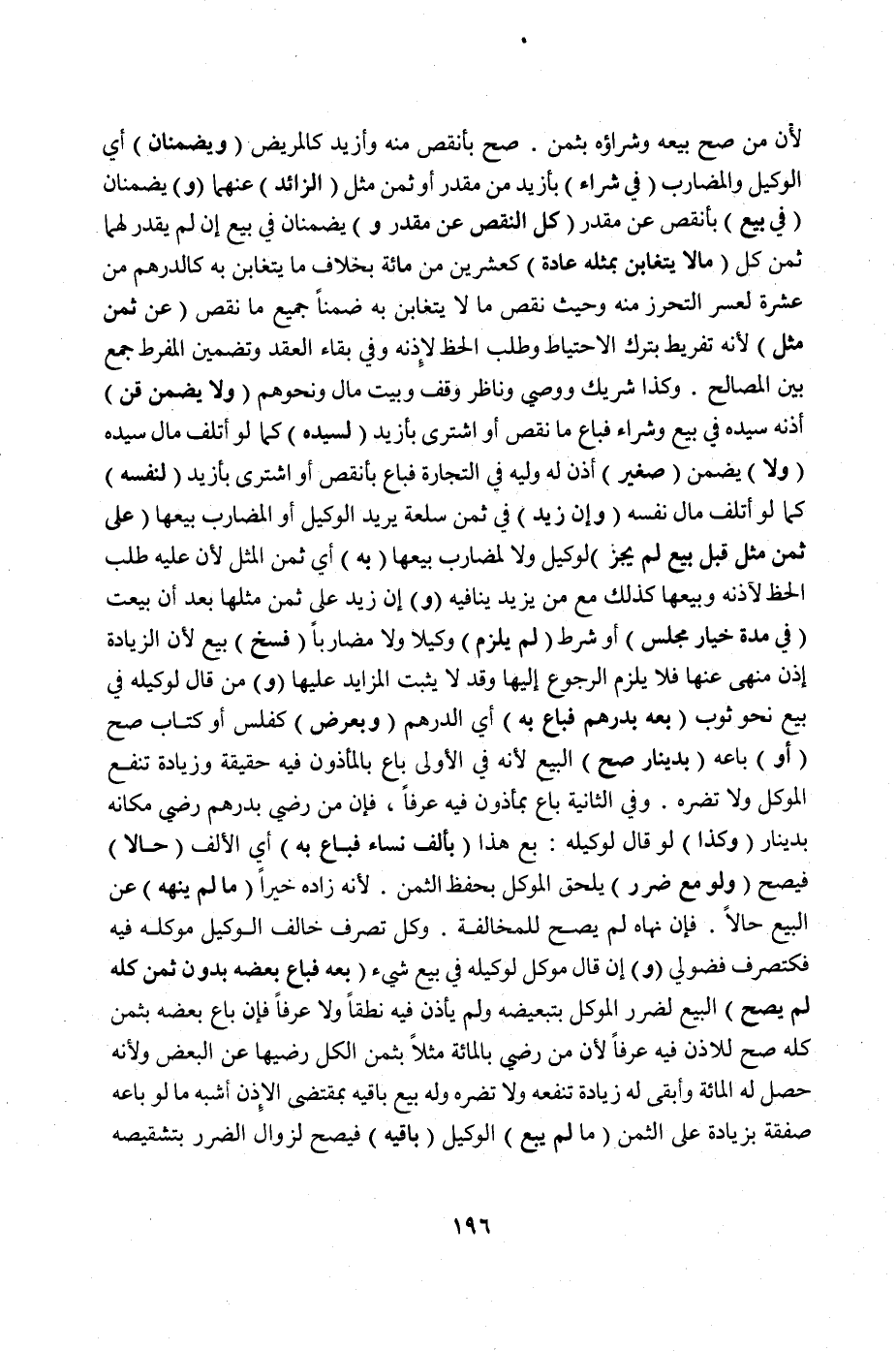 (وَ) مَنْ قَالَ لِوَكِيلِهِ فِي بَيْعِ نَحْوِ ثَوْبٍ (بِعْهُ بِدِرْهَمٍ فَبَاعَ بِهِ) أَيْ الدِّرْهَمِ (وَبِعَرَضٍ) كَفَلَسٍ أَوْ كِتَابٍ صَحَّ (أَوْ) بَاعَهُ (بِدِينَارٍ صَحَّ) الْبَيْعُ ; لِأَنَّهُ فِي الْأُولَى بَاعَ بِالْمَأْذُونِ فِيهِ حَقِيقَةً وَزِيَادَةً تَنْفَعُ الْمُوَكِّلَ وَلَا تَضُرُّهُ وَفِي الثَّانِيَةِ بَاعَ بِمَأْذُونٍ فِيهِ عُرْفًا، فَإِنَّ مَنْ رَضِيَ بِدِرْهَمٍ رَضِيَ مَكَانَهُ بِدِينَارٍ (وَكَذَا) لَوْ قَالَ لِوَكِيلِهِ: بِعْ هَذَا (بِأَلْفٍ نَسَاءً فَبَاعَ بِهِ) أَيْ الْأَلْفِ (حَالًّا) فَيَصِحُّ (وَلَوْ مَعَ ضَرَرٍ) يَلْحَقُ الْمُوَكِّلَ بِحِفْظِ الثَّمَنِ ; لِأَنَّهُ زَادَهُ خَيْرًا (مَا لَمْ يَنْهَهُ) عَنْ الْبَيْعِ حَالًّا فَإِنْ نَهَاهُ لَمْ يَصِحَّ لِلْمُخَالَفَةِ وَكُلُّ تَصَرُّفٍ خَالَفَ الْوَكِيلُ مُوَكِّلَهُ فِيهِ فَكَتَصَرُّفِ فُضُولِيٍّ