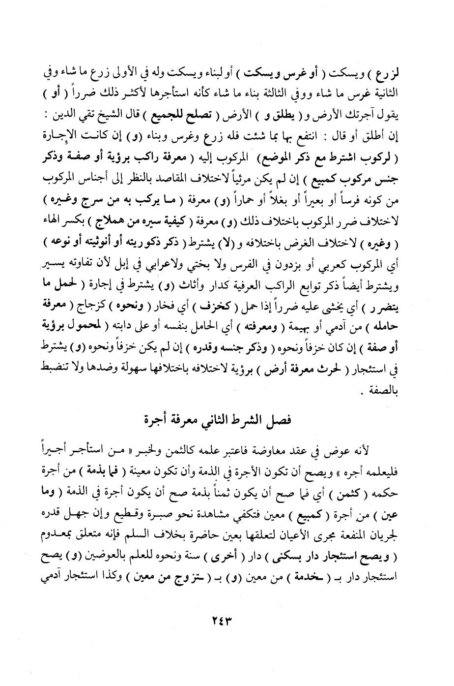 [فَصْلٌ الشَّرْطُ الثَّانِي فِي الْإِجَارَةِ مَعْرِفَةُ أُجْرَةٍ]