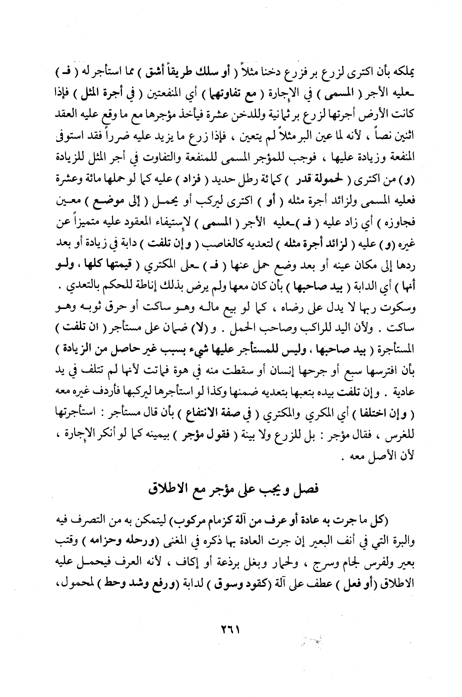 [فَصْلٌ وَيَجِبُ عَلَى مُؤَجِّرٍ مَعَ الْإِطْلَاقِ كُلُّ مَا جَرَتْ بِهِ عَادَةٌ أَوْ عُرْفٌ]