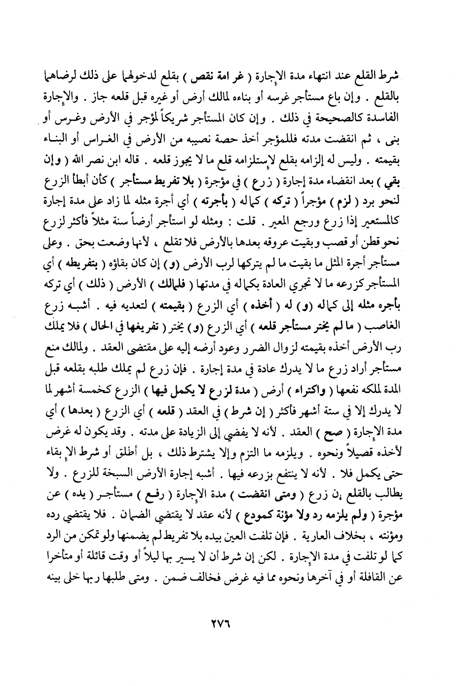 شَرَطَ الْقَلْعَ عِنْدَ انْتِهَاءِ مُدَّةِ الْإِجَارَةِ (غَرَامَةُ نَقْصٍ) بِقَلْعٍ لِدُخُولِهِمَا عَلَى ذَلِكَ لِرِضَاهُمَا بِالْقَلْعِ. وَإِنْ بَاعَ مُسْتَأْجِرٌ غَرْسَهُ أَوْ بِنَاءَهُ لِمَالِكِ أَرْضٍ أَوْ غَيْرِهِ قَبْلَ قَلْعِهِ جَازَ. وَالْإِجَارَةُ الْفَاسِدَةُ كَالصَّحِيحَةِ فِي ذَلِكَ. وَإِنْ كَانَ الْمُسْتَأْجِرُ شَرِيكًا لِمُؤَجِّرٍ فِي الْأَرْضِ وَغَرَسَ أَوْ بَنَى، ثُمَّ انْقَضَتْ مُدَّتُهُ فَلِلْمُؤَجِّرِ أَخْذُ حِصَّةِ نَصِيبِهِ مِنْ الْأَرْضِ فِي الْغِرَاسِ أَوْ الْبِنَاءِ بِقِيمَتِهِ. وَلَيْسَ لَهُ إلْزَامُهُ بِقَلْعٍ لِاسْتِلْزَامِهِ قَلْعَ مَا لَا يَجُوزُ قَلْعُهُ. قَالَهُ ابْنُ نَصْرِ اللَّهِ (وَإِنْ بَقِيَ) بَعْدَ انْقِضَاءِ مُدَّةِ إجَارَةِ (زَرْعٍ) فِي مُؤَجَّرَةٍ (بِلَا تَفْرِيطِ مُسْتَأْجِرٍ) كَأَنْ أَبْطَأَ الزَّرْعُ لِنَحْوِ بَرْدٍ (لَزِمَ) مُؤَجِّرًا (تَرْكُهُ) إلَى كَمَالِهِ (بِأُجْرَتِهِ) أَيْ: أُجْرَةِ مِثْلِهِ لِمَا زَادَ عَلَى مُدَّةِ إجَارَةٍ كَالْمُسْتَعِيرِ إذَا زَرَعَ وَرَجَعَ الْمُعِيرُ قُلْت: وَمِثْلُهُ لَوْ اسْتَأْجَرَ أَرْضًا سَنَةً مَثَلًا فَأَكْثَرَ لِزَرْعِ نَحْوِ قُطْنٍ أَوْ قَصَبٍ وَبَقِيَتْ عُرُوقُهُ بَعْدَهَا بِالْأَرْضِ فَلَا تُقْلَعُ ; لِأَنَّهَا وُضِعَتْ بِحَقٍّ. وَعَلَى مُسْتَأْجِرٍ أُجْرَةُ الْمِثْلِ مَا بَقِيَتْ مَا لَمْ يَتْرُكْهَا لِرَبِّ الْأَرْضِ.