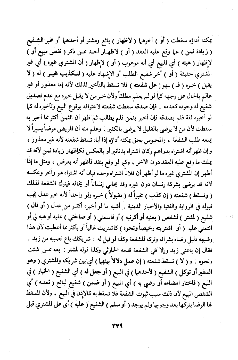 وَ (لَا) تَسْقُطُ شُفْعَتُهُ (إنْ عَمِلَ دَلَّالًا بَيْنَهُمَا) أَيْ: بَيْنَ شَرِيكِهِ وَالْمُشْتَرِي (وَهُوَ السَّفِيرُ أَوْ تَوَكَّلَ) الشَّفِيعُ (لِأَحَدِهِمَا) فِي الْبَيْعِ (أَوْ جُعِلَ لَهُ) أَيْ: الشَّفِيعِ (الْخِيَارُ) فِي الْبَيْعِ (فَاخْتَارَ إمْضَاءَهُ أَوْ رَضِيَ بِهِ) أَيْ: الْمَبِيعِ، (أَوْ ضَمِنَ) شَفِيعٌ لِبَائِعٍ (ثَمَنَهُ) أَيْ: الشِّقْصِ الْمَبِيعِ ; لِأَنَّ ذَلِكَ سَبَبُ ثُبُوتِ الشُّفْعَةِ فَلَا تَسْقُطُ بِهِ كَالْإِذْنِ فِي الْبَيْعِ، وَلِأَنَّ الْمُسْقِطَ لَهَا الرِّضَا بِتَرْكِهَا بَعْدَ وُجُوبِهَا وَلَمْ يُوجَدْ، (أَوْ سَلَّمَ) الشَّفِيعُ (عَلَيْهِ) أَيْ: عَلَى الْمُشْتَرِي قَبْلَ