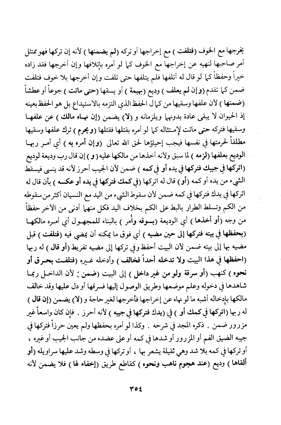 (وَ) إنْ قَالَ رَبُّ وَدِيعَةٍ لِوَدِيعٍ (اُتْرُكْهَا فِي جَيْبِكَ فَتَرَكَهَا فِي يَدِهِ أَوْ فِي كُمِّهِ) ضَمِنَ ; لِأَنَّ الْجَيْبَ أَحْرَزُ لِأَنَّهُ قَدْ يَنْسَى فَيَسْقُطُ الشَّيْءُ مِنْ يَدِهِ أَوْ كُمِّهِ (أَوْ) قَالَ لَهُ: اُتْرُكْهَا (فِي كُمِّكَ فَتَرَكَهَا فِي يَدِهِ أَوْ عَكْسِهِ) بِأَنْ قَالَ لَهُ: اُتْرُكْهَا فِي يَدِكَ فَتَرَكَهَا فِي كُمِّهِ ضَمِنَ ; لِأَنَّ سُقُوطَ الشَّيْءِ مِنْ الْيَدِ مَعَ النِّسْيَانِ أَكْثَرُ مِنْ سُقُوطِهِ مِنْ الْكُمِّ وَتَسَلُّطَ الطِّرَارَ بِالْبَطِّ عَلَى الْكُمِّ بِخِلَافِ الْيَدِ فَكُلٌّ مِنْهُمَا أَدْنَى مِنْ الْآخَرِ حِفْظًا مِنْ وَجْهٍ، (أَوْ أَخَذَهَا) أَيْ: الْوَدِيعَةَ (بِسُوقِهِ وَأُمِرَ) بِالْبِنَاءِ لِلْمَجْهُولِ أَيْ: أَمَرَهُ مَالِكُهَا (بِحِفْظِهَا فِي بَيْتِهِ فَتَرَكَهَا إلَى حِينِ مُضِيِّهِ) أَيْ: فَوْقَ مَا يُمْكِنُهُ أَنْ يَمْضِيَ فِيهِ (فَتَلِفَتْ) قَبْلَ مُضِيِّهِ بِهَا إلَى بَيْتِهِ ضَمِنَ ; لِأَنَّ الْبَيْتَ أَحْفَظُ وَفِي تَرْكِهَا إلَى مُضِيِّهِ تَفْرِيطٌ (أَوْ قَالَ) لَهُ رَبُّهَا (: احْفَظْهَا فِي هَذَا الْبَيْتِ وَلَا تُدْخِلْهُ أَحَدًا فَخَالَفَ) وَأَدْخَلَهُ غَيْرَهُ (فَتَلِفَتْ بِحَرْقٍ أَوْ نَحْوِهِ) كَنَهْبٍ (أَوْ سَرِقَةٍ وَلَوْ مِنْ غَيْرِ دَاخِلٍ) إلَى الْبَيْتِ (ضَمِنَ) ; لِأَنَّ الدَّاخِلَ رُبَمَا شَاهَدَهَا فِي دُخُولِهِ وَعَلِمَ مَوْضِعَهَا وَطَرِيقَ الْوُصُولِ إلَيْهَا فَسَرَقَهَا أَوْ دَلَّ عَلَيْهَا وَقَدْ خَالَفَ مَالِكُهَا بِإِدْخَالِهِ أَشْبَهَ مَا لَوْ نَهَاهُ عَنْ إخْرَاجِهَا فَأَخْرَجَهَا لِغَيْرِ حَاجَةٍ وَ (لَا) يَضْمَنُ (إنْ قَالَ) لَهُ رَبُّهَا (: اُتْرُكْهَا فِي كُمِّك أَوْ) فِي (يَدِكَ فَتَرَكَهَا فِي جَيْبِهِ) لِأَنَّهُ أَحْرَزُ. فَإِنْ كَانَ وَاسِعًا غَيْرَ مَزْرُورٍ ضَمِنَ. ذَكَرَهُ الْمَجْدُ فِي شَرْحِهِ. وَكَذَا لَوْ أَمَرَهُ بِحِفْظِهَا وَلَمْ يُعَيِّنْ حِرْزًا فَتَرَكَهَا فِي جَيْبِهِ الضَّيِّقِ الْفَمِ أَوْ الْمَزْرُورِ أَوْ شَدَّهَا فِي كُمِّهِ أَوْ عَلَى عَضُدِهِ مِنْ جَانِبِ الْجَيْبِ أَوْ غَيْرِهِ، أَوْ تَرَكَهَا فِي كُمِّهِ بِلَا شَدٍّ وَهِيَ ثَقِيلَةٌ يَشْعُرُ بِهَا، أَوْ تَرَكَهَا فِي وَسَطِهِ وَشَدَّ عَلَيْهَا سَرَاوِيلَهُ، (أَوْ أَلْقَاهَا) وَدِيعٌ (عِنْدَ هُجُومِ نَاهِبٍ وَنَحْوِهِ) كَقَاطِعِ طَرِيقٍ (إخْفَاءً لَهَا) فَلَا يَضْمَنُ ; لِأَنَّهُ