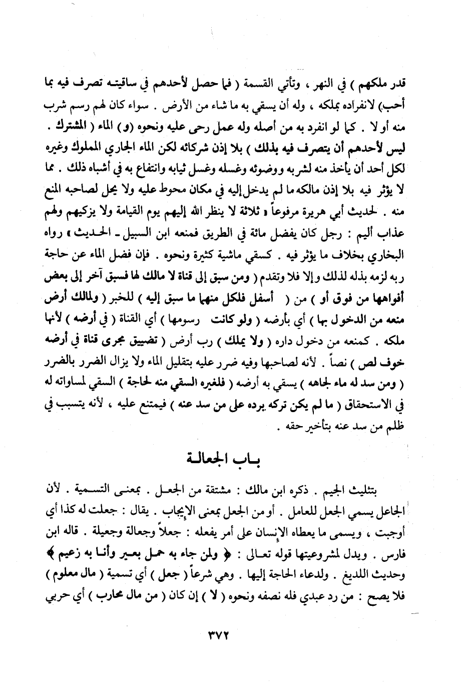 ِ بِتَثْلِيثِ الْجِيمِ. ذَكَرَهُ ابْنُ مَالِكٍ: مُشْتَقَّةٌ مِنْ الْجُعْلِ. بِمَعْنَى التَّسْمِيَةِ ; لِأَنَّ الْجَاعِلَ يُسَمِّي الْجُعْلَ لِلْعَامِلِ. أَوْ مِنْ الْجَعْلِ بِمَعْنَى الْإِيجَابِ. يُقَالُ: جَعَلْتُ لَهُ كَذَا أَيْ: أَوْجَبْتُ، وَيُسَمَّى مَا يُعْطَاهُ الْإِنْسَانُ عَلَى أَمْرٍ يَفْعَلُهُ: جُعْلًا وَجَعَالَةً وَجَعِيلَةً. قَالَهُ ابْنُ فَارِسٍ. وَيَدُلُّ لِمَشْرُوعِيَّتِهَا قَوْله تَعَالَى {: وَلِمَنْ جَاءَ بِهِ حِمْلُ بَعِيرٍ وَأَنَا بِهِ زَعِيمٌ} [يوسف: ٧٢] وَحَدِيثُ اللَّدِيغِ. وَلِدُعَاءِ الْحَاجَةِ إلَيْهَا وَهِيَ شَرْعًا (جَعْلُ) أَيْ: تَسْمِيَةُ (مَالٍ مَعْلُومٍ) فَلَا يَصِحُّ: مَنْ رَدَّ عَبْدِي فَلَهُ نِصْفُهُ وَنَحْوُهُ (لَا) إنْ كَانَ (مِنْ مَالِ مُحَارِبٍ) أَيْ: حَرْبِيٍّ