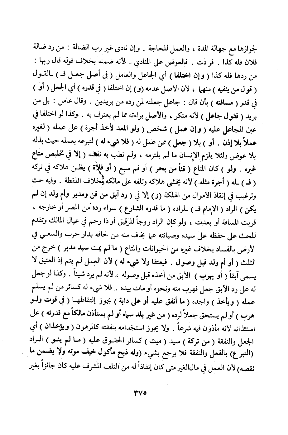 لِجَوَازِهَا مَعَ جَهَالَةِ الْمُدَّةِ، وَالْعَمَلِ لِلْحَاجَةِ، وَإِنْ نَادَى غَيْرُ رَبِّ الضَّالَّةِ: مَنْ رَدَّ ضَالَّةَ فُلَانٍ فَلَهُ كَذَا فَرُدَّتْ فَالْعِوَضُ عَلَى الْمُنَادِي. لِأَنَّهُ ضَمِنَهُ بِخِلَافِ قَوْلِهِ قَالَ رَبُّهَا: مَنْ رَدَّهَا فَلَهُ كَذَا