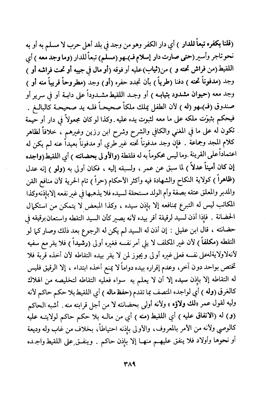 قَالَ ابْنُ عَقِيلٍ: إنْ أَذِنَ لَهُ السَّيِّدُ لَمْ يَكُنْ لَهُ الرُّجُوعُ بَعْدَ ذَلِكَ وَصَارَ كَمَا لَوْ الْتَقَطَهُ (مُكَلَّفًا) ; لِأَنَّ غَيْرَ الْمُكَلَّفِ لَا يَلِي أَمْرَ نَفْسِهِ فَغَيْرُهُ أَوْلَى (رَشِيدًا) فَلَا يُقَرُّ مَعَ سَفِيهٍ ; لِأَنَّهُ لَا وِلَايَةَ لَهُ عَلَى نَفْسِهِ فَعَلَى غَيْرِهِ أَوْلَى، وَيَجُوزُ لِمَنْ لَا يُقِرُّ بِيَدِهِ الْتِقَاطُهُ ; لِأَنَّ أَخْذَهُ قُرْبَةٌ فَلَا تَخْتَصُّ بِوَاحِدٍ دُونَ آخَرَ، وَعَدَمُ إقْرَارِهِ بِيَدِهِ دَوَامًا لَا يَمْنَعُ أَخْذَهُ ابْتِدَاءً، إلَّا الرَّقِيقُ فَلَيْسَ لَهُ الْتِقَاطُهُ إلَّا بِإِذْنِ سَيِّدِهِ إلَّا أَنْ لَا يَعْلَمَ بِهِ سِوَاهُ فَعَلَيْهِ الْتِقَاطُهُ لِتَخْلِيصِهِ مِنْ الْهَلَاكِ كَالْغَرَقِ (وَلَهُ) أَيْ: لِوَاجِدِهِ الْمُتَّصِفِ بِمَا تَقَدَّمَ (حِفْظُ مَالِهِ) أَيْ: اللَّقِيطِ بِلَا حُكْمِ حَاكِمٍ لِأَنَّهُ وَلِيُّهُ لِقَوْلِ عُمَرَ: " لَكَ وَلَاؤُهُ " ; وَلِأَنَّهُ أَوْلَى بِحَضَانَتِهِ لَا مِنْ أَجْلِ قَرَابَتِهِ مِنْهُ. أَشْبَهَ الْحَاكِمَ (وَ) لَهُ (الْإِنْفَاقُ عَلَيْهِ) أَيْ: اللَّقِيطِ (مِنْهُ) أَيْ: مِنْ مَالِهِ بِلَا حُكْمِ حَاكِمٍ لِوِلَايَتِهِ عَلَيْهِ كَالْوَصِيِّ وَلِأَنَّهُ مِنْ الْأَمْرِ بِالْمَعْرُوفِ، وَالْأَوْلَى بِإِذْنِهِ احْتِيَاطًا، بِخِلَافِ مَنْ غَابَ وَلَهُ وَدِيعَةٌ أَوْ نَحْوُهَا وَأَوْلَادٌ فَلَا يُنْفِقُ عَلَيْهِمْ مِنْهَا إلَّا بِإِذْنِ حَاكِمٍ. وَيُنْفِقُ عَلَى اللَّقِيطِ وَاجِدُهُ