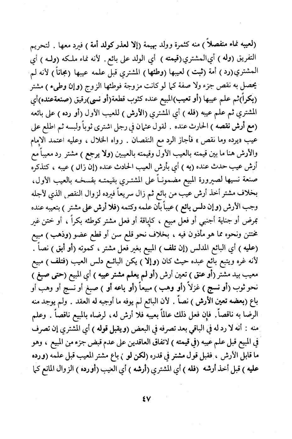 (لِعَيْبِهِ نَمَاءً مُنْفَصِلًا) مِنْهُ كَثَمَرَةٍ وَوَلَدِ بَهِيمَةٍ (إلَّا لِعُذْرٍ كَوَلَدِ أَمَةٍ) فَيَرُدُّ مَعَهَا لِتَحْرِيمِ التَّفْرِيقِ (وَلَهُ) أَيْ الْمُشْتَرِي (قِيمَتُهُ) أَيْ الْوَلَدِ عَلَى بَائِعٍ ; لِأَنَّهُ نَمَاءُ مِلْكِهِ.