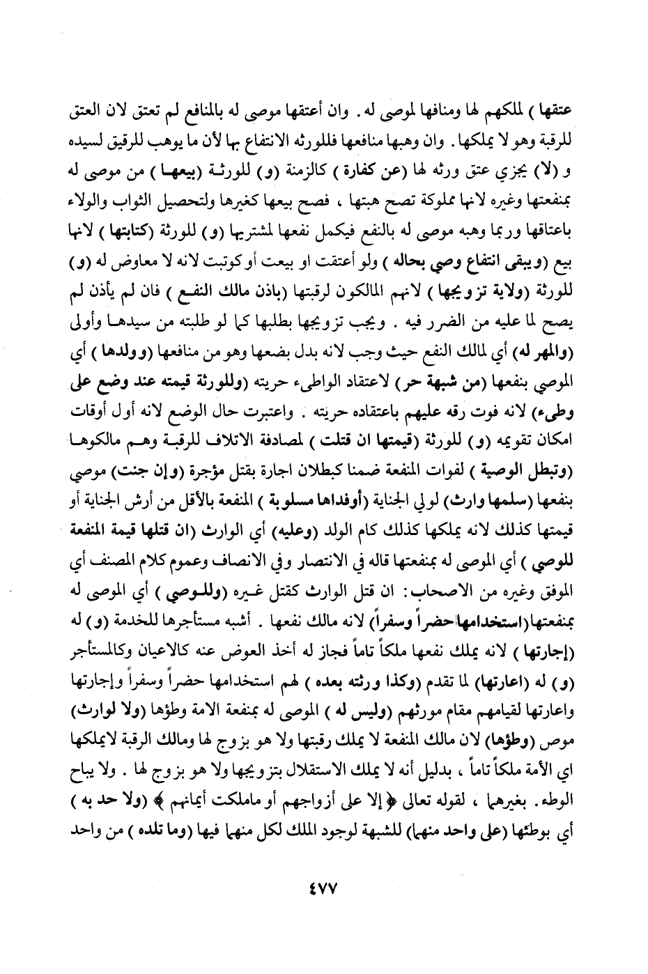 عِتْقُهَا) لِمِلْكِهِمْ لَهَا وَمَنَافِعِهَا لِمُوصًى لَهُ. وَإِنْ أَعْتَقَهَا مُوصًى لَهُ بِالْمَنَافِعِ لَمْ تَعْتِقْ لِأَنَّ الْعِتْقَ لِلرَّقَبَةِ وَهُوَ لَا يَمْلِكُهَا. وَإِنْ وَهَبَهَا مَنَافِعَهَا فَلِلْوَرَثَةِ الِانْتِفَاعُ بِهَا لِأَنَّ مَا يُوهَبُ لِلرَّقِيقِ لِسَيِّدِهِ و (لَا) يَجْزِي عِتْقُ وَرَثَةٍ لَهَا (عَنْ كَفَّارَةٍ) كَالزَّمِنَةِ (وَ) لِلْوَرَثَةِ (بَيْعُهَا) مِنْ مُوصًى لَهُ بِمَنْفَعَتِهَا وَغَيْرِهِ لَأَنَّهَا مَمْلُوكَةً تَصِحُّ هِبَتُهَا، فَصَحَّ بَيْعُهَا كَغَيْرِهَا وَلِتَحْصِيلِ الثَّوَابِ وَالْوَلَاءِ بِإِعْتَاقِهَا وَرُبَمَا وَهَبَهُ مُوصًى لَهُ بِالنَّفْعِ فَيُكْمِلُ نَفْعَهَا لِمُشْتَرِيهَا (وَ) لِلْوَرَثَةِ (كِتَابَتُهَا) لِأَنَّهَا بَيْعٌ (وَيَبْقَى انْتِفَاعُ وَصِيٍّ بِحَالِهِ) وَلَوْ أُعْتِقَتْ أَوْ بِيعَتْ أَوْ كُوتِبَتْ لِأَنَّهُ لَا مُعَاوِضَ لَهُ (وَ) لِلْوَرَثَةِ (وِلَايَةُ تَزْوِيجِهَا) لِأَنَّهُمْ الْمَالِكُونَ لِرَقَبَتِهَا (بِإِذْنِ مَالِكِ النَّفْعِ) فَإِنْ لَمْ يَأْذَنْ لَمْ يَصِحَّ لِمَا عَلَيْهِ مِنْ الضَّرَرِ فِيهِ. وَيَجِبُ تَزْوِيجُهَا بِطَلَبِهَا كَمَا لَوْ طَلَبَتْهُ مِنْ سَيِّدِهَا وَأَوْلَى (وَالْمَهْرُ لَهُ) أَيْ لِمَالِكِ النَّفْعِ حَيْثُ وَجَبَ لِأَنَّهُ بَدَلُ بُضْعِهَا وَهُوَ مِنْ مَنَافِعِهَا (وَوَلَدُهَا) أَيْ الْمُوصَى بِنَفْعِهَا (مِنْ شُبْهَةٍ حُرٌّ) لِاعْتِقَادِ الْوَاطِئِ حُرِّيَّتَهُ (وَلِلْوَرَثَةِ قِيمَتُهُ عِنْدَ وَضْعٍ عَلَى وَاطِئٍ) لِأَنَّهُ فَوَّتَ رِقَّهُ عَلَيْهِمْ بِاعْتِقَادِهِ حُرِّيَّتَهُ. وَاعْتُبِرَتْ حَالُ الْوَضْعِ لِأَنَّهُ أَوَّلُ أَوْقَاتِ إمْكَانَ تَقْوِيمِهِ (وَ) لِلْوَرَثَةِ (قِيمَتُهَا إنْ قُتِلَتْ) لِمُصَادَفَةِ الْإِتْلَافِ لِلرَّقَبَةِ وَهُمْ مَالِكُوهَا (وَتَبْطُلُ الْوَصِيَّةُ) لِفَوَاتِ الْمَنْفَعَةِ ضِمْنًا كَبُطْلَانِ إجَارَةٍ بِقَتْلِ مُؤَجَّرَةٍ (وَإِنْ جَنَتْ) مُوصًى بِنَفْعِهَا (سَلَّمَهَا وَارِثٌ) لِوَلِيِّ الْجِنَايَةِ (أَوْ فَدَاهَا مَسْلُوبَةَ) الْمَنْفَعَةِ بِالْأَقَلِّ مِنْ أَرْشِ الْجِنَايَةِ أَوْ قِيمَتِهَا كَذَلِكَ لِأَنَّهُ يَمْلِكُهَا كَذَلِكَ كَأُمِّ الْوَلَدِ (وَعَلَيْهِ) أَيْ الْوَارِثِ (إنْ قَتَلَهَا قِيمَةُ الْمَنْفَعَةِ لِلْوَصِيِّ) أَيْ الْمُوصَى لَهُ بِمَنْفَعَتِهَا قَالَهُ فِي الِانْتِصَارِ.