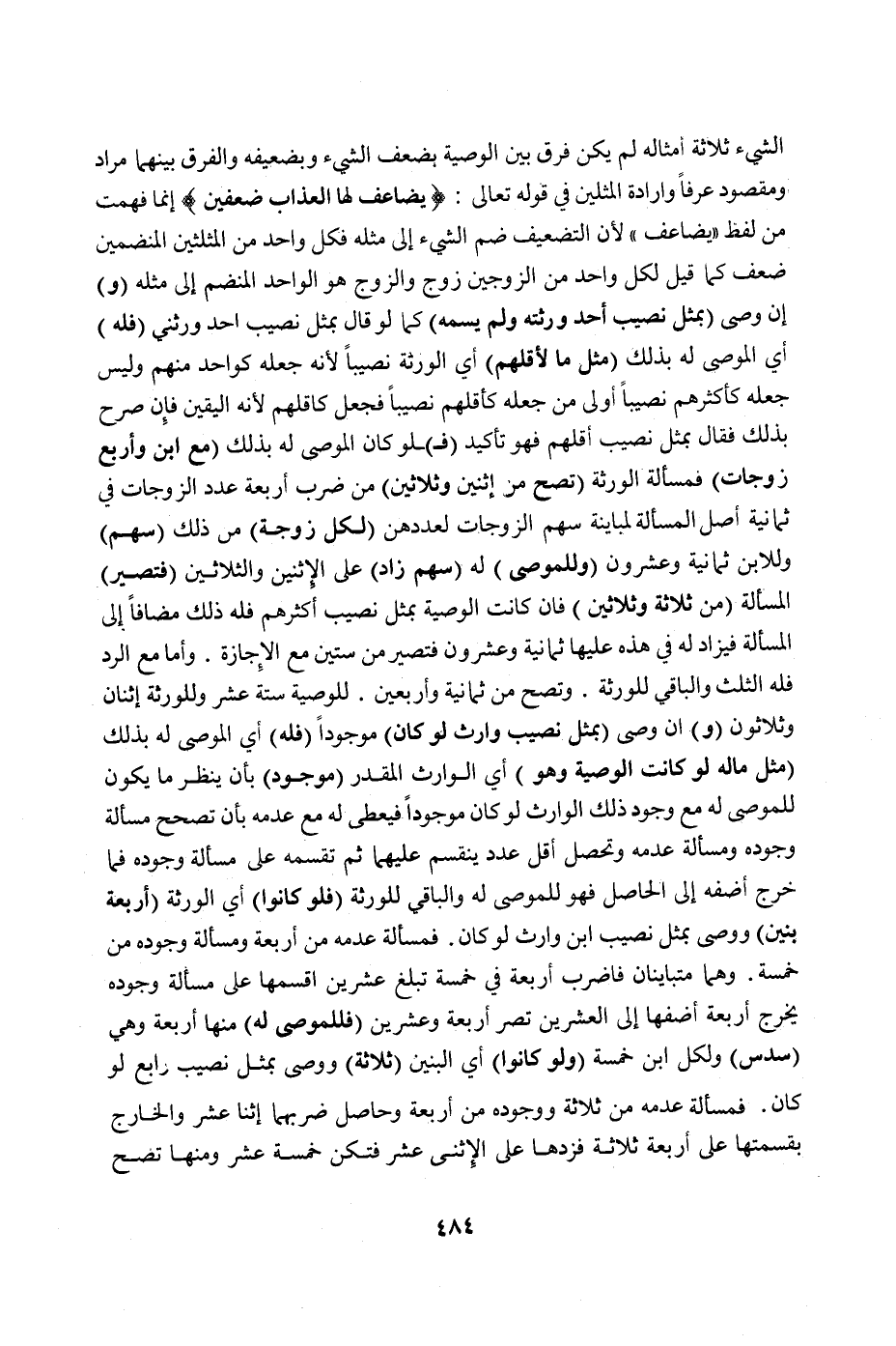 الشَّيْءِ ثَلَاثَةُ أَمْثَالِهِ لَمْ يَكُنْ فَرْقٌ بَيْنَ الْوَصِيَّةِ بِضِعْفِ الشَّيْءِ وَبِضِعْفَيْهِ وَالْفَرْقُ بَيْنَهُمَا مُرَادٌ وَمَقْصُودٌ عُرْفًا وَإِرَادَةُ الْمِثْلَيْنِ فِي قَوْله تَعَالَى: {يُضَاعَفُ لَهَا الْعَذَابُ ضِعْفَيْنِ} [الأحزاب: ٣٠] إنَّمَا فُهِمَتْ مِنْ لَفْظِ " يُضَاعَفُ " لِأَنَّ التَّضْعِيفَ ضَمُّ الشَّيْءِ إلَى مِثْلِهِ فَكُلُّ وَاحِدٍ مِنْ الْمِثْلَيْنِ الْمُنْضَمَّيْنِ ضِعْفٌ كَمَا قِيلَ لِكُلِّ وَاحِدٍ مِنْ الزَّوْجَيْنِ زَوْجٌ وَالزَّوْجُ هُوَ الْوَاحِدُ الْمُنْضَمُّ إلَى مِثْلِهِ.