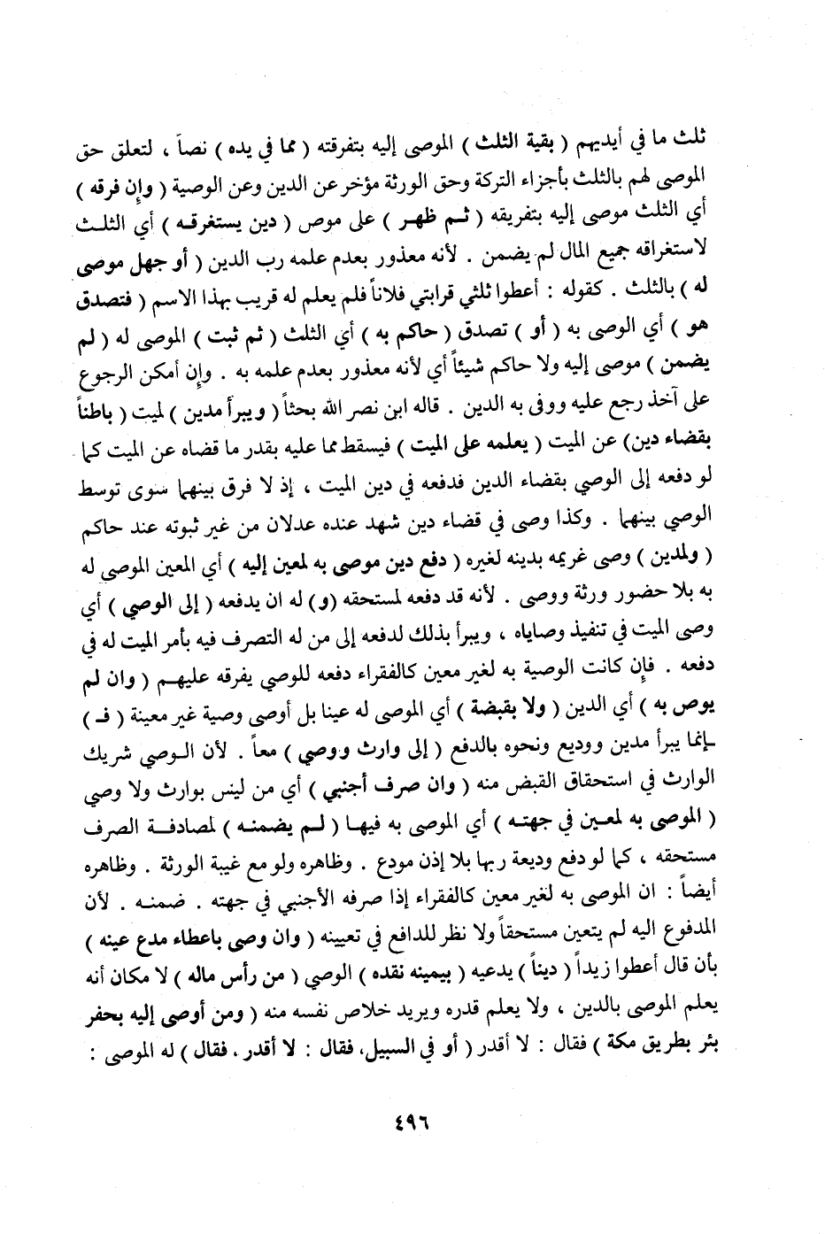 ثُلُثِ مَا فِي أَيْدِيهِمْ (بَقِيَّةَ الثُّلُثِ) الْمُوصَى إلَيْهِ بِتَفْرِقَتِهِ (مِمَّا فِي يَدِهِ) نَصًّا، لِتَعَلُّقِ حَقِّ الْمُوصَى لَهُمْ بِالثُّلُثِ بِأَجْزَاءِ التَّرِكَةِ وَحَقُّ الْوَرَثَةِ مُؤَخَّرٌ عَنْ الدَّيْنِ وَعَنْ الْوَصِيَّةِ