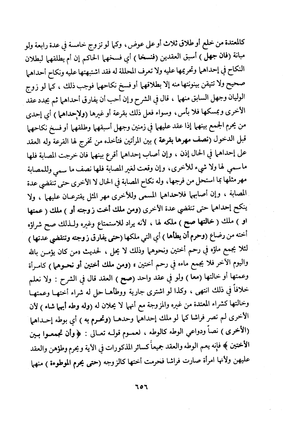 كَالْمُعْتَدَّةِ مِنْ خُلْعٍ أَوْ طَلَاقِ ثَلَاثٍ أَوْ عَلَى عِوَضٍ، وَكَمَا لَوْ تَزَوَّجَ خَامِسَةً فِي عِدَّةِ رَابِعَةٍ وَلَوْ مُبَانَةً (فَإِنْ جُهِلَ) أَسْبَقُ الْعَقْدَيْنِ (فُسِخَا) أَيْ فَسَخَهُمَا الْحَاكِمُ إنْ لَمْ يُطَلِّقْهُمَا لِبُطْلَانِ النِّكَاحِ فِي إحْدَاهُمَا وَتَحْرِيمِهَا عَلَيْهِ وَلَا تُعْرَفُ الْمُحَلَّلَةُ لَهُ فَقَدْ اشْتَبَهَتْهَا عَلَيْهِ وَنِكَاحُ إحْدَاهُمَا صَحِيحٌ وَلَا تَتَيَقَّنُ بَيْنُونَتُهَا مِنْهُ إلَّا بِطَلَاقِهِمَا أَوْ فَسْخِ نِكَاحِهِمَا فَوَجَبَ ذَلِكَ، كَمَا لَوْ زَوَّجَ الْوَلِيَّانِ وَجُهِلَ السَّابِقُ مِنْهُمَا، قَالَ فِي الشَّرْحِ.