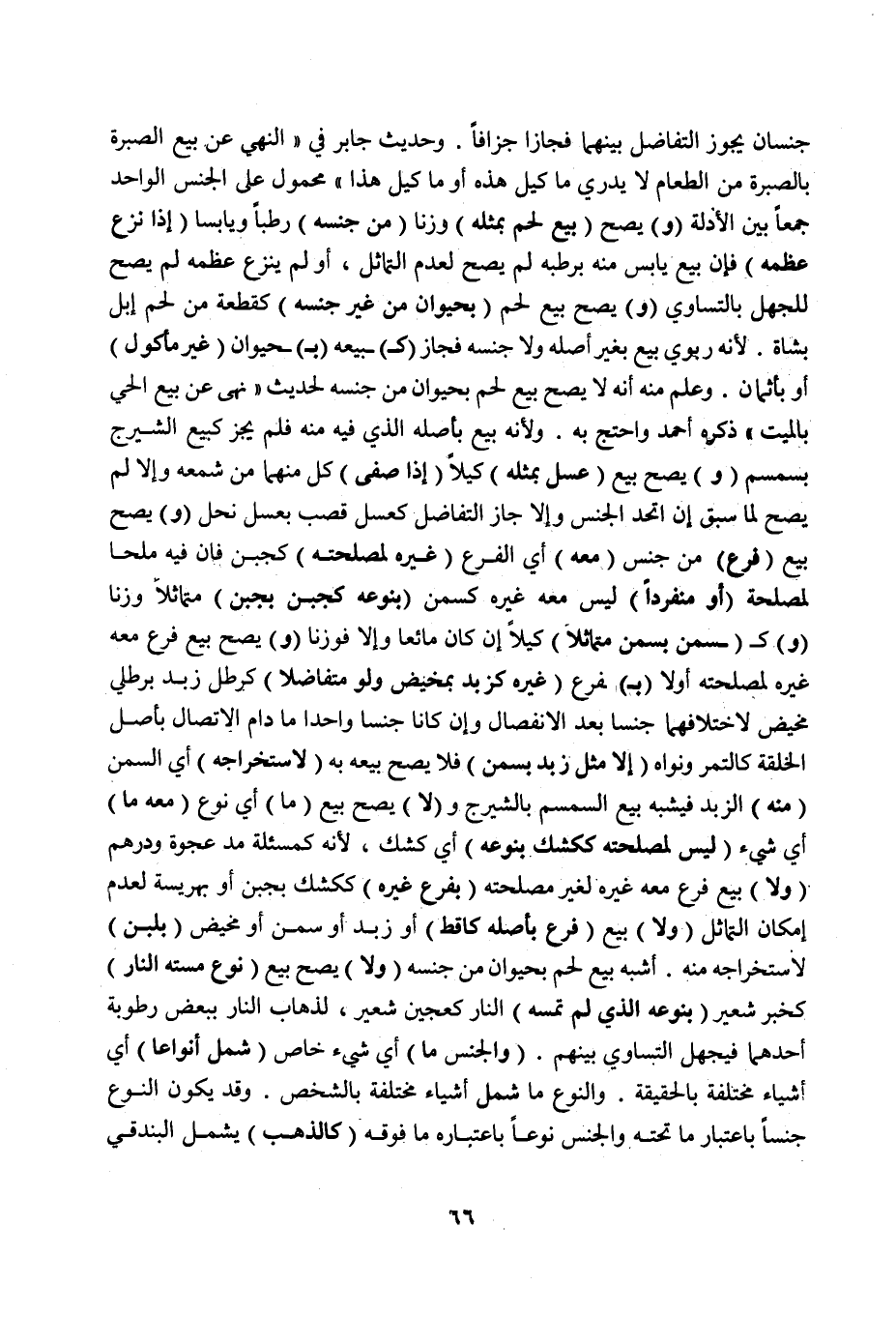 (وَالْجِنْسُ مَا) أَيْ شَيْءٌ خَاصٌّ (شَمَلَ أَنْوَاعًا) أَيْ أَشْيَاءً مُخْتَلِفَةً بِالْحَقِيقَةِ، وَالنَّوْعُ مَا شَمَلَ أَشْيَاءً مُخْتَلِفَةً بِالشَّخْصِ وَقَدْ يَكُونُ النَّوْعُ جِنْسًا بِاعْتِبَارِ مَا تَحْتَهُ وَالْجِنْسُ نَوْعًا بِاعْتِبَارِ مَا فَوْقَهُ (كَالذَّهَبِ) يَشْمَلُ الْبُنْدُقِيَّ