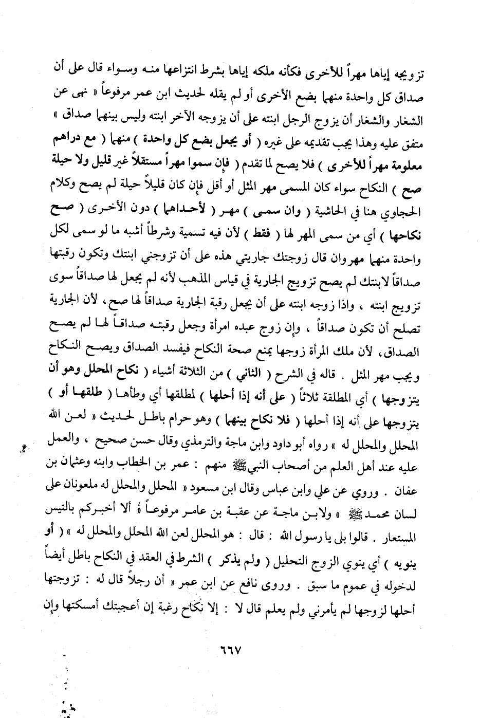لِحَدِيثِ «لَعَنَ اللَّهُ الْمُحَلِّلَ وَالْمُحَلَّلَ لَهُ» رَوَاهُ أَبُو دَاوُد وَابْنُ مَاجَهْ وَالتِّرْمِذِيُّ وَقَالَ: حَسَنٌ صَحِيحٌ، وَالْعَمَلُ عَلَيْهِ عِنْدَ أَهْلِ الْعِلْمِ مِنْ أَصْحَابِ النَّبِيِّ صَلَّى اللَّهُ عَلَيْهِ وَسَلَّمَ مِنْهُمْ: عُمَرُ بْنُ الْخَطَّابِ وَابْنُهُ وَعُثْمَانُ بْنُ عَفَّانَ،.
