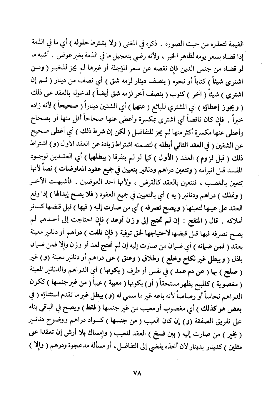 (وَلَا يُشْتَرَطُ حُلُولُهُ) أَيْ مَا فِي الذِّمَّةِ إذَا قَضَاهُ بِسِعْرِ يَوْمِهِ لِظَاهِرِ الْخَبَرِ، وَلِأَنَّهُ رَضِيَ بِتَعْجِيلِ مَا فِي الذِّمَّةِ بِغَيْرِ عِوَضٍ أَشْبَهَ مَا لَوْ قَضَاهُ مِنْ جِنْسِ الدَّيْنِ فَإِنْ نَقَصَهُ عَنْ سِعْرِ الْمُؤَجَّلَةِ أَوْ غَيْرِهَا لَمْ يَجُزْ لِلْخَبَرِ