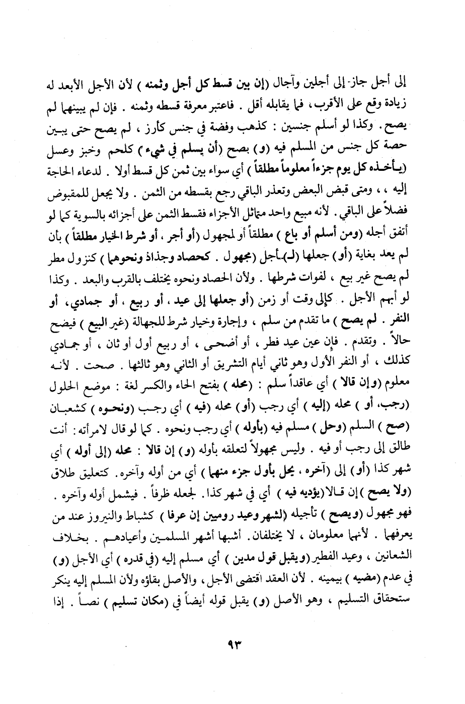 إلَى أَجَلٍ جَازَ إلَى أَجَلَيْنِ وَآجَالٍ (إنْ بَيَّنَ قِسْطَ كُلِّ أَجَلٍ وَثَمَنَهُ) ; لِأَنَّ الْأَجَلَ الْأَبْعَدَ لَهُ زِيَادَةُ وَقْعٍ عَلَى الْأَقْرَبِ، فَمَا يُقَابِلُهُ أَقَلُّ فَاعْتُبِرَ مَعْرِفَةُ قِسْطِهِ وَثَمَنِهِ فَإِنْ لَمْ يُبَيِّنْهُمَا لَمْ يَصِحَّ وَكَذَا لَوْ أَسْلَمَ جِنْسَيْنِ: كَذَهَبٍ وَفِضَّةٍ فِي جِنْسٍ كَأُرْزٍ، لَمْ يَصِحَّ حَتَّى يُبَيِّنَ حِصَّةَ كُلِّ جِنْسٍ مِنْ الْمُسْلَمِ فِيهِ.