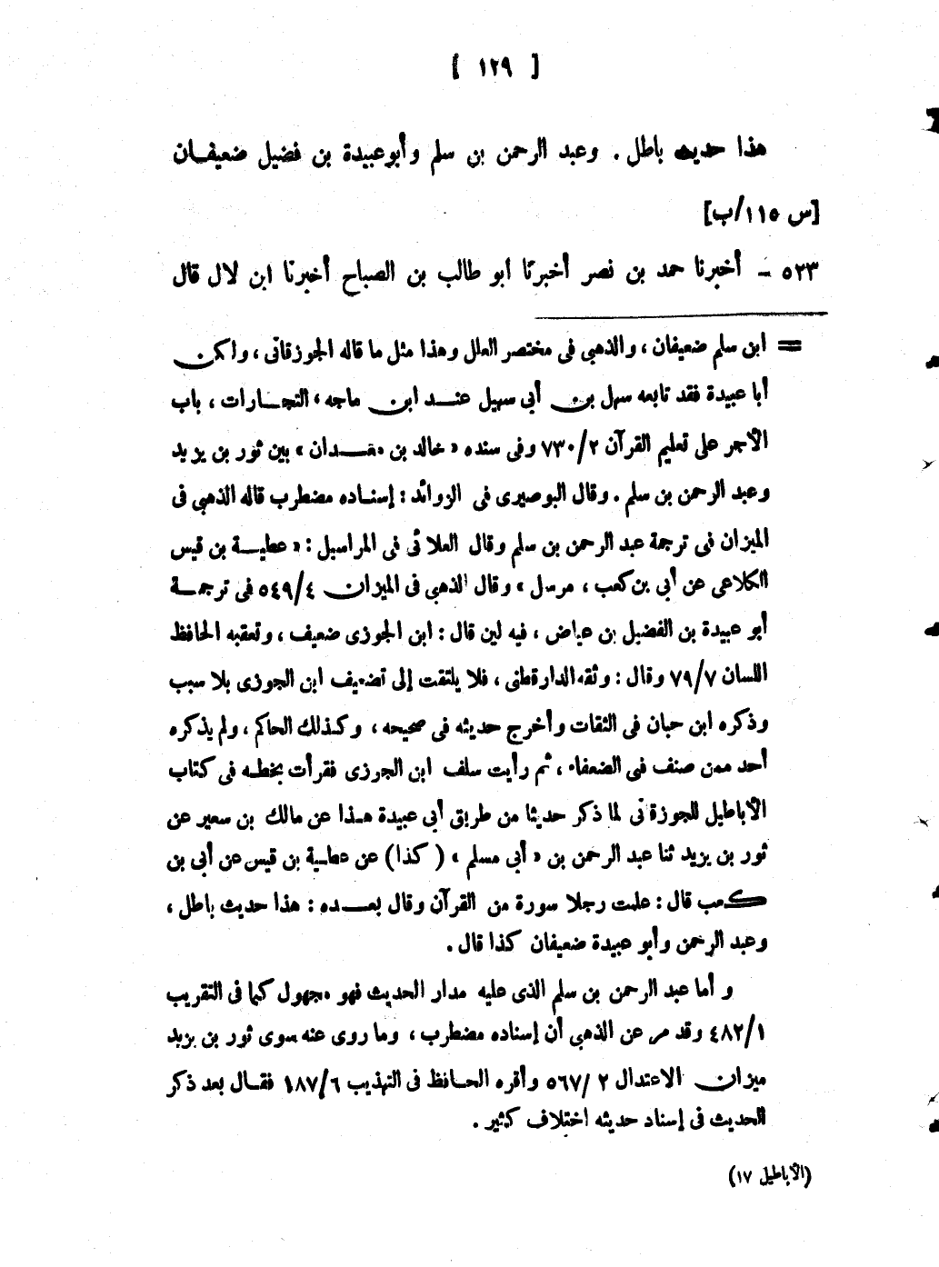 هَذَا حَدِيثٌ بَاطِلٌ، لَمْ يَرْوِهِ عَنْ زَيْدِ بْنِ عَبْدِ الْحَمِيدِ، إِلَّا دَاوُدُ بْنُ عَطَاءٍ وَهُوَ مُنْكَرُ الْحَدِيثِ،