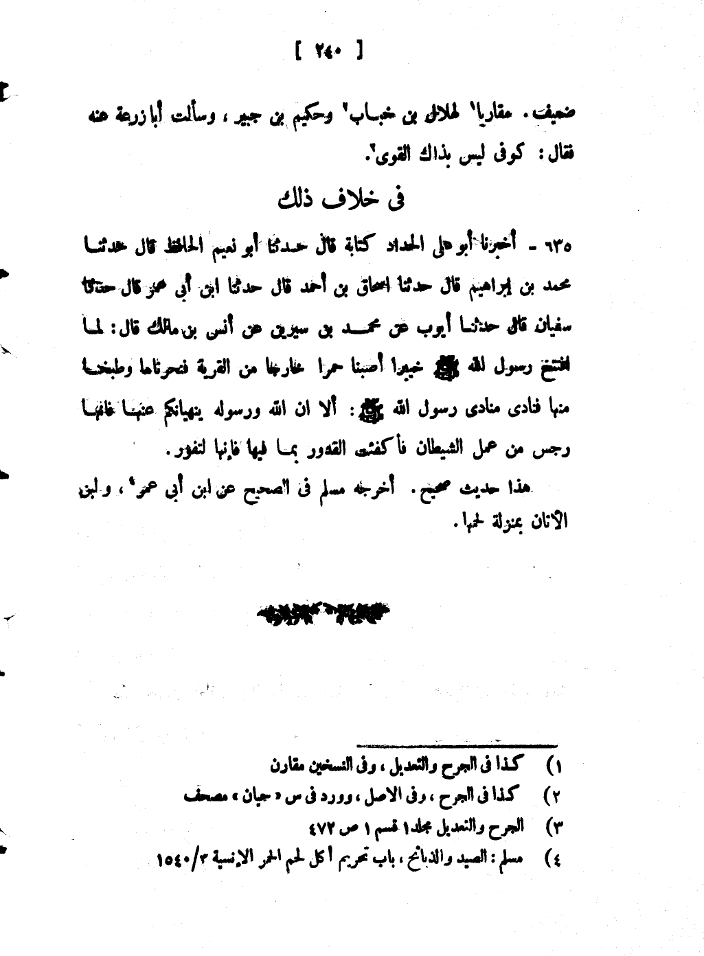 582 - فَقَالَ عَلِيُّ: نَشَدْتُكَ بِاللَّهِ: أَسَمِعْتَ عُمَرَ بْنَ الْخَطَّابِ، يَقُولُ: سَمِعْتُ رَسُولَ اللَّهِ صَلَّى اللَّهُ عَلَيْهِ وَسَلَّمَ يَقُولُ: «إِنَّ الْحَسَنِ وَالْحُسَيْنِ سَيِّدَا شَبَابِ أَهْلِ الْجَنَّةِ؟» ، قَالَ: اللَّهُمَّ نَعَمْ، قَالَ: فَلَا تُجِيزُ شَهَادَةَ شَبَابِ أَهْلِ الْجَنَّةِ، وَاللَّهِ لَتَخْرُجَنَّ إِلَى بَانِقْيَا فَتَقْضِيَنَّ بَيْنَ أَهْلَهَا أَرْبَعِينَ يَوْمًا، قَالَ: ثُمَّ سَلَّمَ الدِّرْعَ إِلَى الْيَهُودِيِّ، فَقَالَ الْيَهُودِيُّ: أَمِيرُ الْمُؤْمِنِينَ مَشَى مَعِي أَقْضِيهِ فَقَضَى عَلَيْهِ فَرَضِيَ بِهِ، صَدَقْتَ وَاللَّهِ إِنَّهَا لَدِرْعُكُ، وَسَقَطَتْ مِنْكَ يَوْمَ كَذَا وَكَذَا عَنْ جَمَلٍ لَكَ أَوْرَقَ فَالْتَقَطْتُهَا، أَشْهَدُ أَنْ لَا إِلَهَ إِلَّا اللَّهُ، وَأَنَّ مُحَمَّدًا رَسُولُ اللَّهِ، فَقَالَ عَلِيٌّ: هَذَا الدِّرْعُ لَكَ، وَهَذَا الْفَرَسُ لَكَ، وَفَرَضَ لَهُ فِي بَيْتِ الْمَالِ تُسْعُ مِائَةٍ ثُمَّ لَمْ يَزَلْ مَعَهُ حَتَّى قُتِلَ يَوْمَ صِفِّينَ.