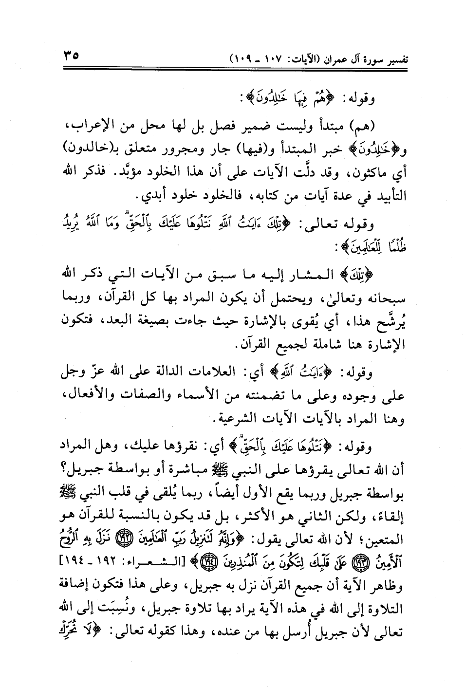 {تِلْكَ} المشار إليه ما سبق من الآيات التي ذكر الله سبحانه وتعالى، ويحتمل أن يكون المراد بها كل القرآن، وربما يُرشَّح هذا، أي يُقوى بالإشارة حيث جاءت بصيغة البعد، فتكون الإشارة هنا شاملة لجميع القرآن.