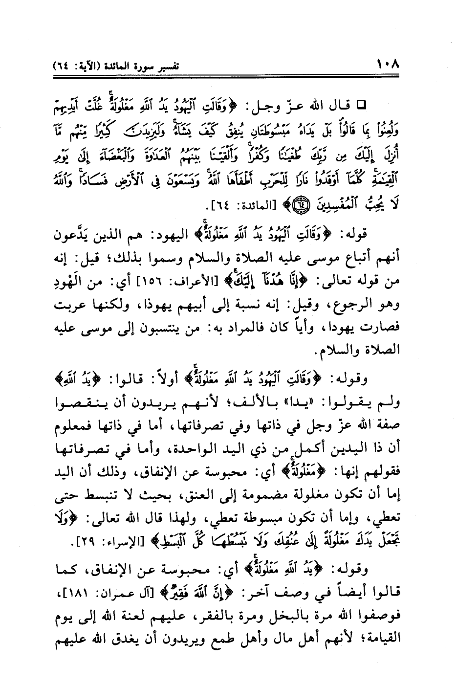 ° قال الله عَزَّ وَجَلَّ: {وَقَالَتِ الْيَهُودُ يَدُ اللَّهِ مَغْلُولَةٌ غُلَّتْ أَيْدِيهِمْ وَلُعِنُوا بِمَا قَالُوا بَلْ يَدَاهُ مَبْسُوطَتَانِ يُنْفِقُ كَيْفَ يَشَاءُ وَلَيَزِيدَنَّ كَثِيرًا مِنْهُمْ مَا أُنْزِلَ إِلَيْكَ مِنْ رَبِّكَ طُغْيَانًا وَكُفْرًا وَأَلْقَيْنَا بَيْنَهُمُ الْعَدَاوَةَ وَالْبَغْضَاءَ إِلَى يَوْمِ الْقِيَامَةِ كُلَّمَا أَوْقَدُوا نَارًا لِلْحَرْبِ أَطْفَأَهَا اللَّهُ وَيَسْعَوْنَ فِي الْأَرْضِ فَسَادًا وَاللَّهُ لَا يُحِبُّ الْمُفْسِدِينَ (٦٤)} [المائدة: ٦٤].