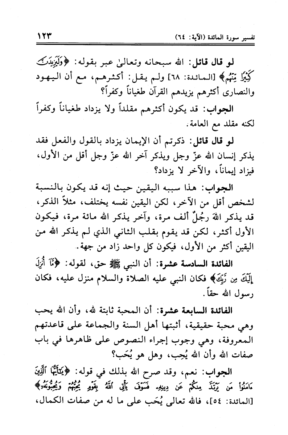 لو قال قائل: الله سبحانه وتعالى عبر بقوله: {وَلَيَزِيدَنَّ كَثِيرًا مِنْهُمْ} [المائدة: ٦٨] ولم يقل: أكثرهم، مع أن اليهود والنصارى أكثرهم يزيدهم القرآن طغيانًا وكفرًا؟