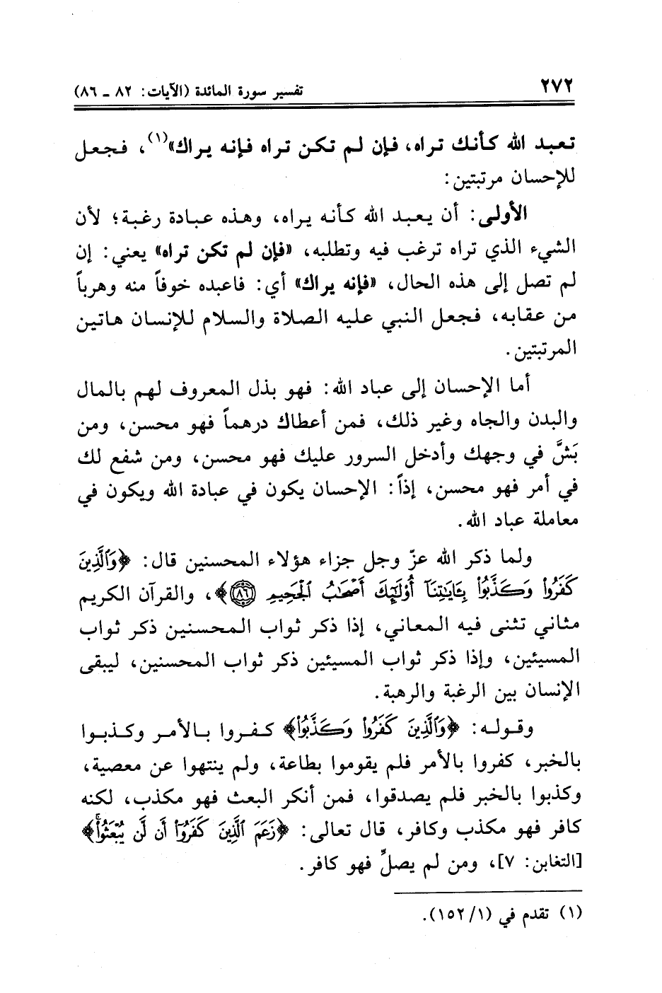 ولما ذكر الله عزّ وجل جزاء هؤلاء المحسنين قال: {وَالَّذِينَ كَفَرُوا وَكَذَّبُوا بِآيَاتِنَا أُولَئِكَ أَصْحَابُ الْجَحِيمِ (٨٦)}، والقرآن الكريم مثاني تثنى فيه المعاني، إذا ذكر ثواب المحسنين ذكر ثواب المسيئين، وإذا ذكر ثواب المسيئين ذكر ثواب المحسنين، ليبقى الإنسان بين الرغبة والرهبة.