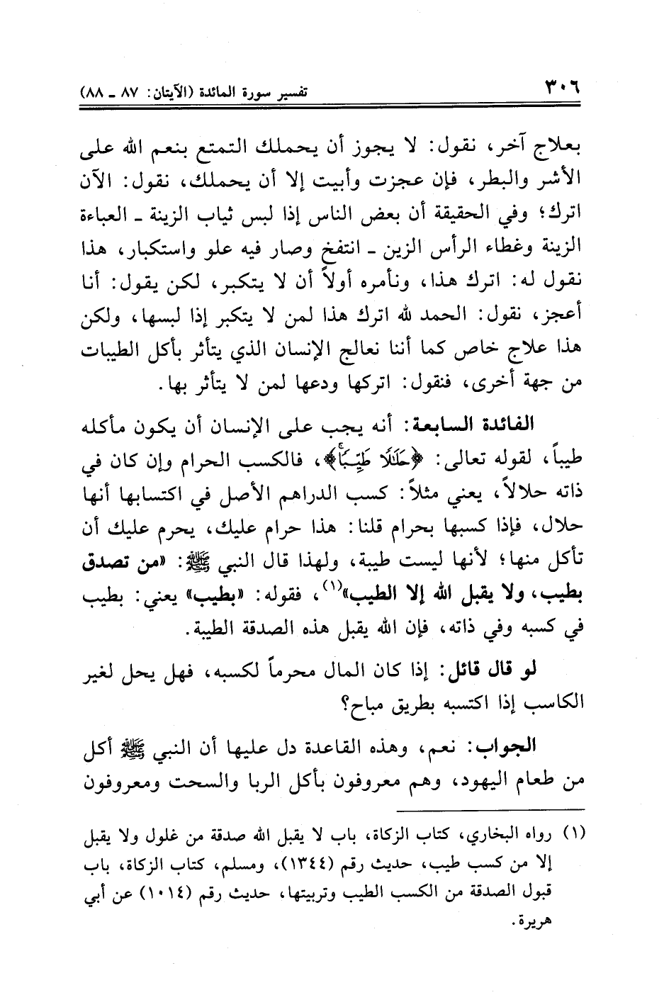 (¬١) رواه البخاري، كتاب الزكاة، باب لا يقبل الله صدقة من غلول ولا يقبل إلا من كسب طيب، حديث رقم (١٣٤٤)، ومسلم، كتاب الزكاة، باب قبول الصدقة من الكسب الطيب وتربيتها، حديث رقم (١٠١٤) عن أبي هريرة.