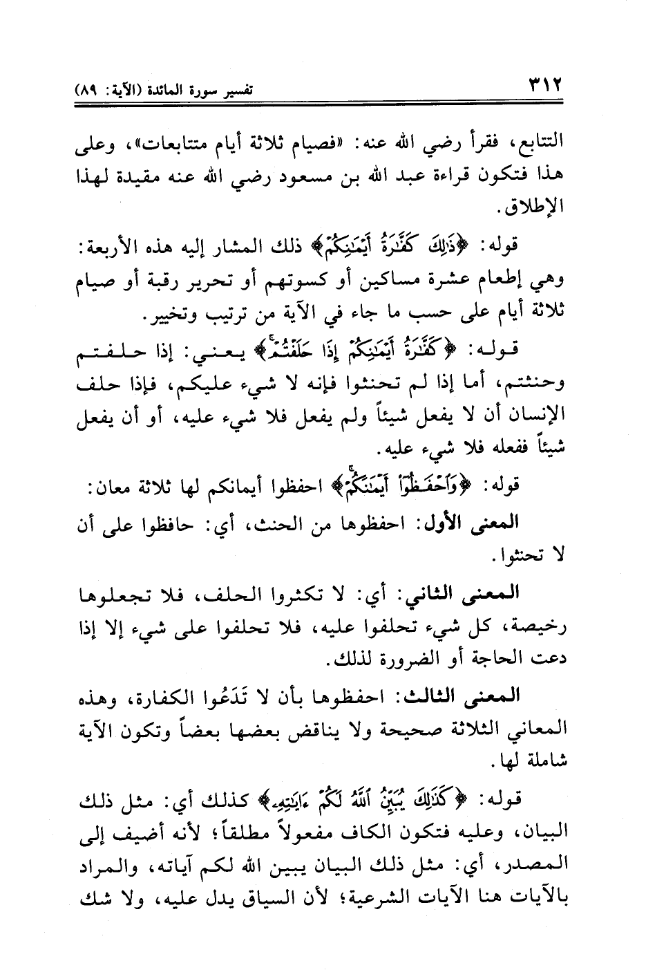 المعنى الثالث: احفظوها بأن لا تَدَعُوا الكفارة، وهذه المعاني الثلاثة صحيحة ولا يناقض بعضها بعضًا وتكون الآية شاملة لها.
