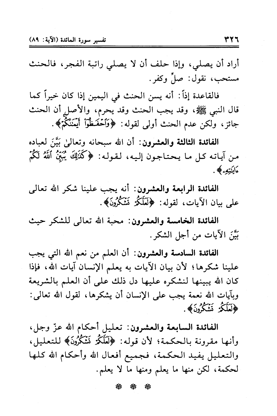 الفائدة الخامسة والعشرون: محبة الله تعالى للشكر حيث بَيَّنَ الآيات من أجل الشكر.