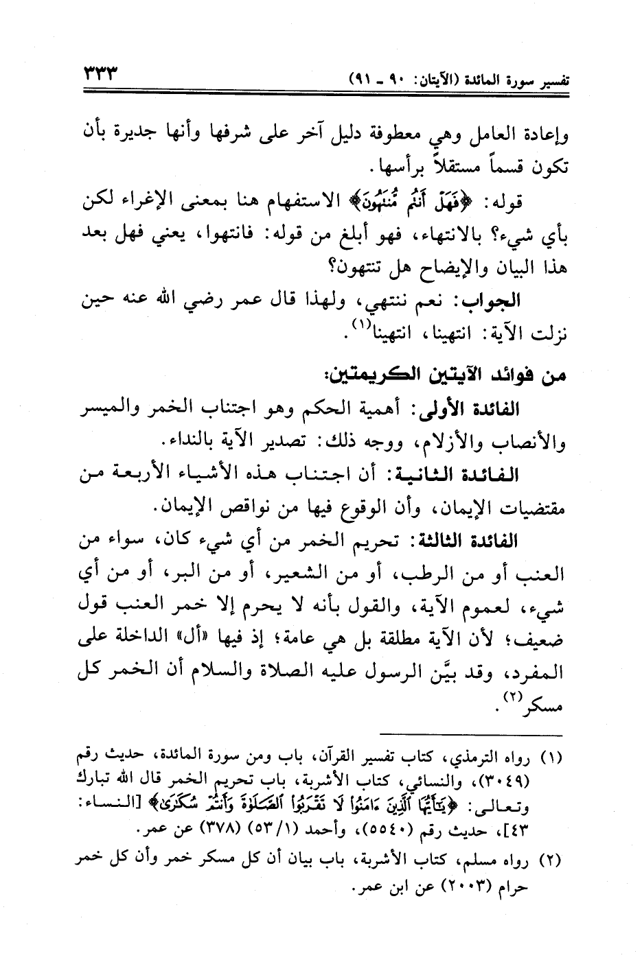 (¬١) رواه الترمذي، كتاب تفسير القرآن، باب ومن سورة المائدة، حديث رقم (٣٠٤٩)، والنسائي، كتاب الأشربة، باب تحريم الخمر قال الله تبارك وتعالى: {يَاأَيُّهَا الَّذِينَ آمَنُوا لَا تَقْرَبُوا الصَّلَاةَ وَأَنْتُمْ سُكَارَى} [النساء: ٤٣]، حديث رقم (٥٥٤٠)، وأحمد (١/ ٥٣) (٣٧٨) عن عمر.
