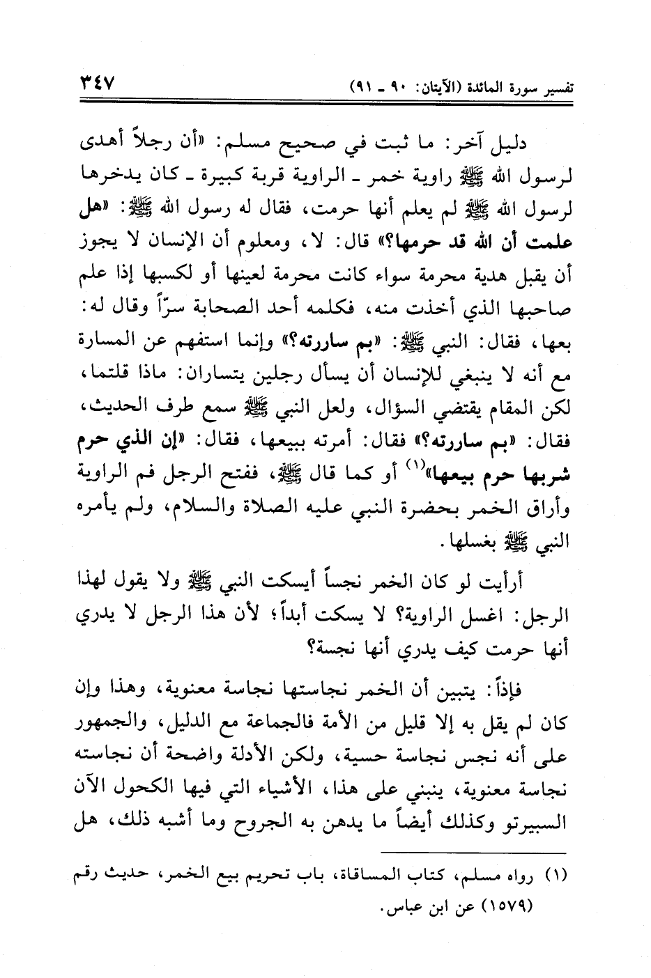 (¬١) رواه مسلم، كتاب المساقاة، باب تحريم بيع الخمر، حديث رقم (١٥٧٩) عن ابن عباس.