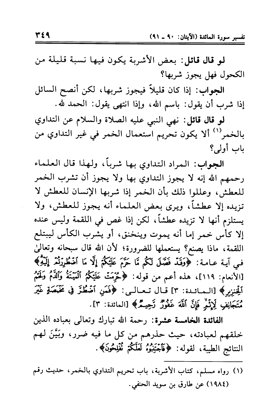 (¬١) رواه مسلم، كتاب الأشربة، باب تحريم التداوي بالخمر، حديث رقم (١٩٨٤) عن طارق بن سويد الحنفي.