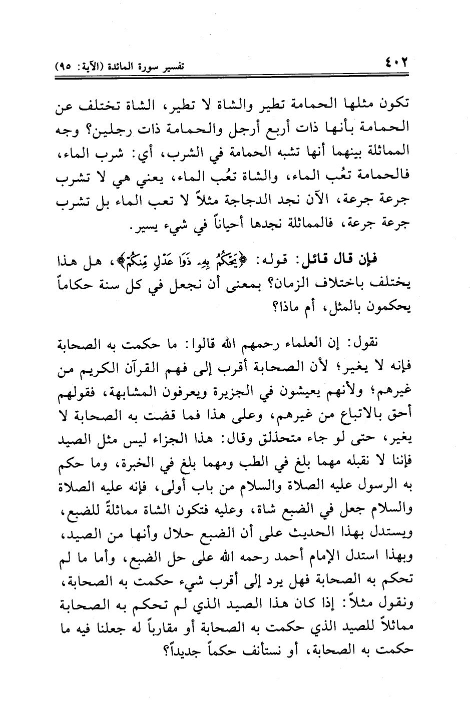 فإن قال قائل: قوله: {يَحْكُمُ بِهِ ذَوَا عَدْلٍ مِنْكُمْ}، هل هذا يختلف باختلاف الزمان؟ بمعنى أن نجعل في كل سنة حكامًا يحكمون بالمثل، أم ماذا؟