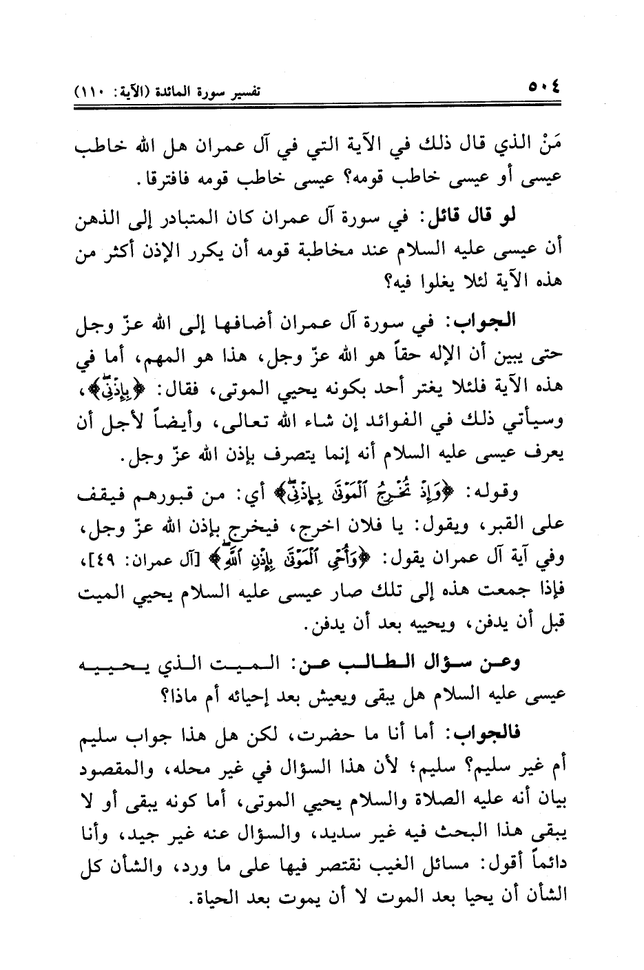 فالجواب: أما أنا ما حضرت، لكن هل هذا جواب سليم أم غير سليم؟ سليم؛ لأن هذا السؤال في غير محله، والمقصود بيان أنه عليه الصلاة والسلام يحيي الموتى، أما كونه يبقى أو لا يبقى هذا البحث فيه غير سديد، والسؤال عنه غير جيد، وأنا دائمًا أقول: مسائل الغيب نقتصر فيها على ما ورد، والشأن كل الشأن أن يحيا بعد الموت لا أن يموت بعد الحياة.