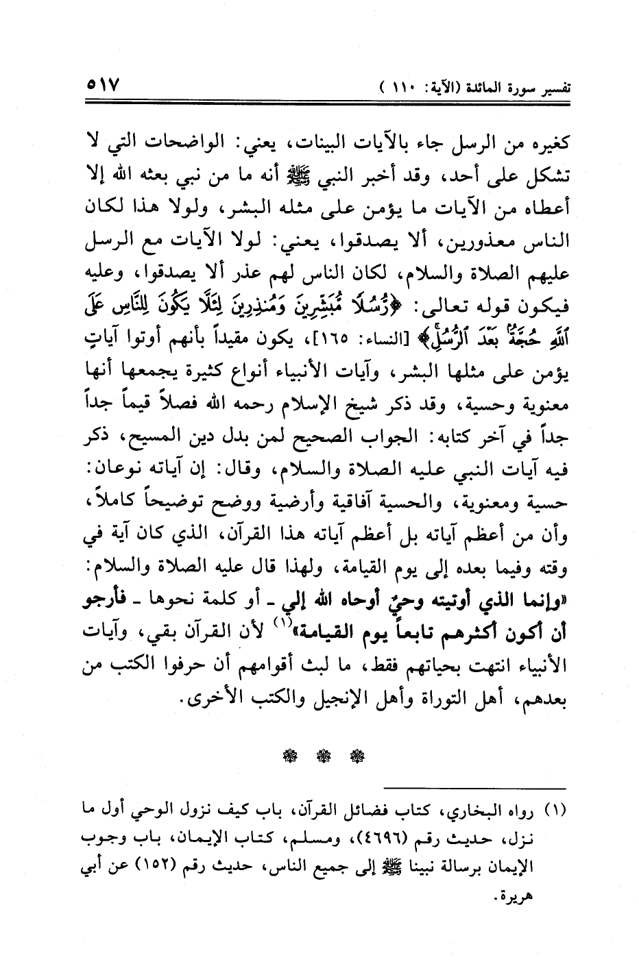 (¬١) رواه البخاري، كتاب فضائل القرآن، باب كيف نزول الوحي أول ما نزل، حديث رقم (٤٦٩٦)، ومسلم، كتاب الإيمان، باب وجوب الإيمان برسالة نبينا - صلى الله عليه وسلم - إلى جميع الناس، حديث رقم (١٥٢) عن أبي هريرة.