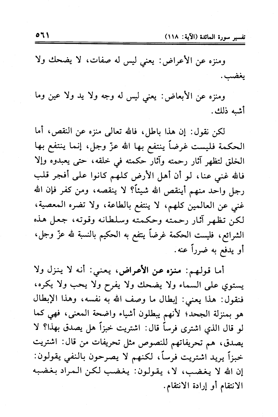 لكن نقول: إن هذا باطل، فالله تعالى منزه عن النقص، أما الحكمة فليست غرضًا ينتفع بها الله عزّ وجل، إنما ينتفع بها الخلق لتظهر آثار رحمته وآثار حكمته في خلقه، حتى يعبدوه وإلا فالله غني عنا، لو أن أهل الأرض كلهم كانوا على أفجر قلب رجل واحد منهم أينقص الله شيئًا؟ لا ينقصه، ومن كفر فإن الله غني عن العالمين كلهم، لا ينتفع بالطاعة، ولا تضره المعصية، لكن تظهر آثار رحمته وحكمته وسلطانه وقوته، جعل هذه الشرائع، فليست الحكمة غرضًا ينتفع به الحكيم بالنسبة لله عزّ وجل، أو يدفع به ضررًا عنه.