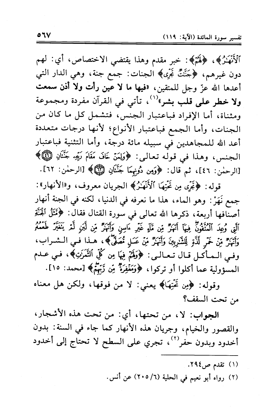 الجواب: لا، من تحتها، أي: من تحت هذه الأشجار، والقصور والخيام، وجريان هذه الأنهار كما جاء في السنة: بدون أخدود وبدون حفر (¬٢)، تجري على السطح لا تحتاج إلى أخدود