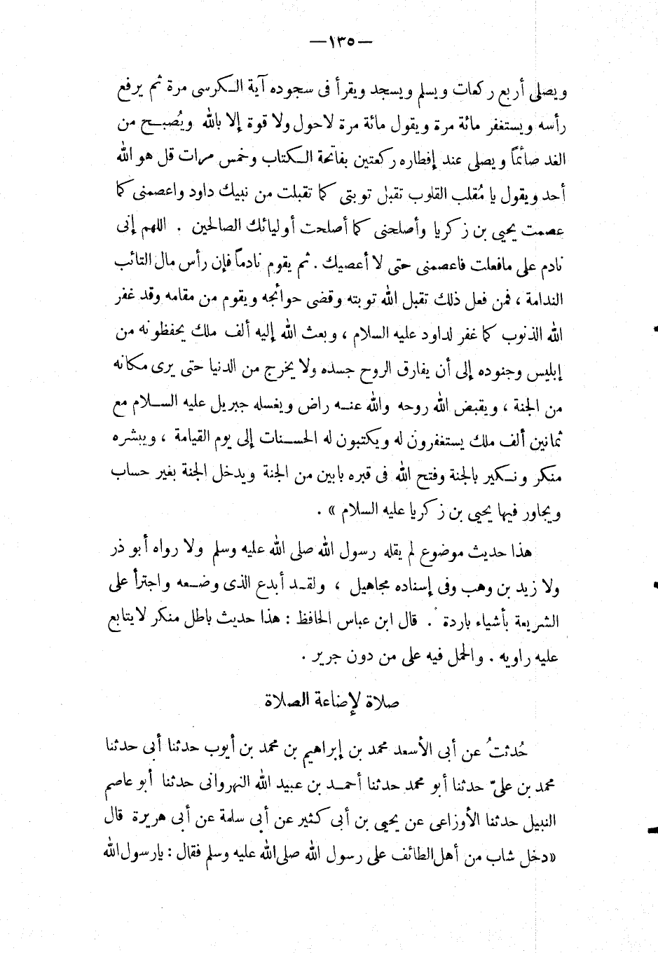 صَلَاة لاضاعة الصَّلَاة حدثت عَنْ أَبِي الأَسْعَدِ مُحَمَّدُ بْنُ إِبْرَاهِيمَ بْنِ مُحَمَّدِ بْنِ أَيُّوبَ حَدَّثَنَا أَبِي حَدَّثَنَا مُحَمَّدُ بْنُ عَلِيٍّ حَدَّثَنَا أَبُو مُحَمَّدٍ حَدَّثَنَا أَحْمد بن عبيد الله النَّهْرَوَانِيُّ حَدَّثَنَا أَبُو عَاصِمٍ النَّبِيلُ حَدَّثَنَا الأَوْزَاعِيُّ عَنْ يَحْيَى بْنِ أَبِي كَثِيرٍ عَنْ أَبِي سَلَمَةَ عَنْ أَبِي هُرَيْرَةَ قَالَ " دَخَلَ شَابٌّ مِنْ أَهْلِ الطَّائِفِ عَلَى رَسُول الله صَلَّى اللَّهُ عَلَيْهِ وَسَلَّمَ فَقَالَ: يَا رَسُولَ اللَّهِ