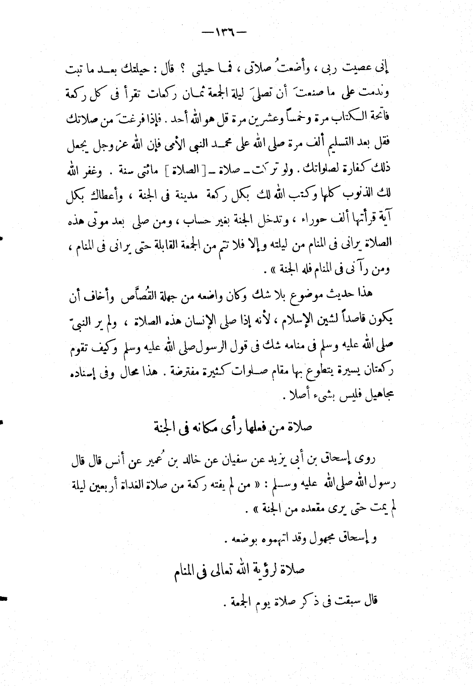 صَلَاة لرؤية اللَّه تَعَالَى فِي الْمَنَامِ قَالَ سبقت فِي ذكر صَلَاة يَوْم الْجُمُعَة.