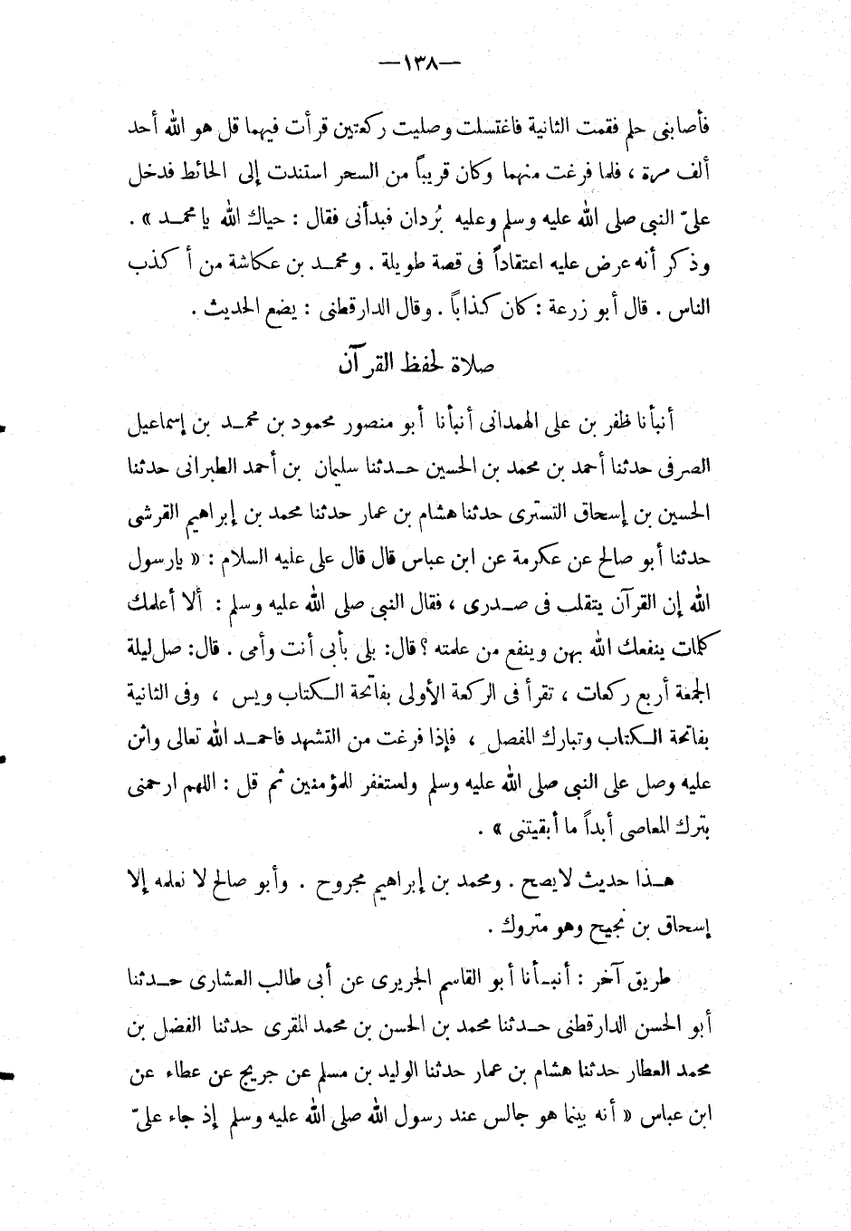 صَلَاة لحفظ الْقُرْآن أَنبأَنَا ظَفْرُ بْنُ عَلِيٍّ الْهَمْدَانِيُّ أَنْبَأَنَا أَبُو مَنْصُورٍ مَحْمُودُ بْنُ مُحَمَّدِ بْنِ إِسْمَاعِيلَ