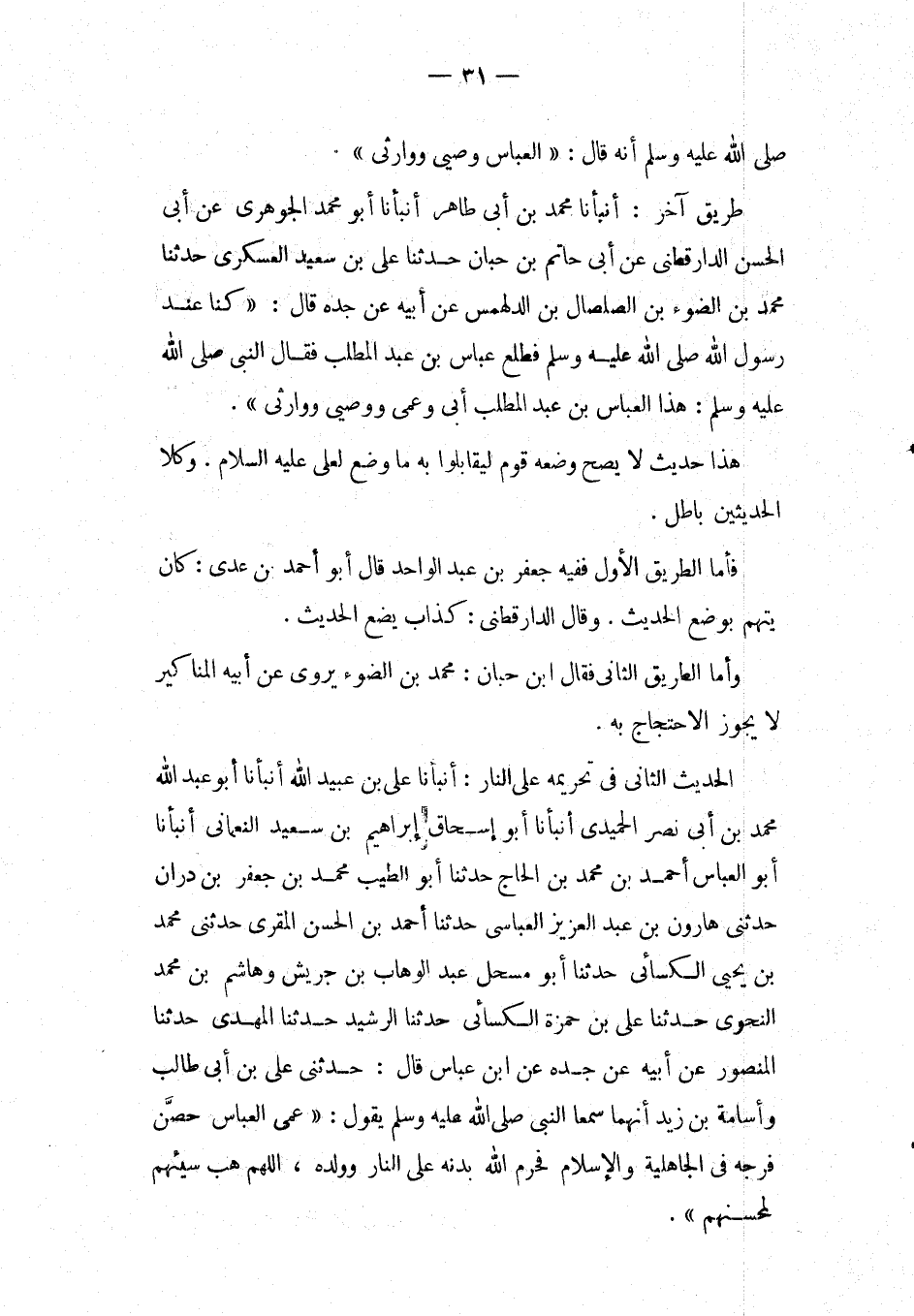 صَلَّى اللَّهُ عَلَيْهِ وَسَلَّمَ أَنَّهُ قَالَ: " الْعَبَّاسُ وَصِيِّي وَوَارِثِي ".