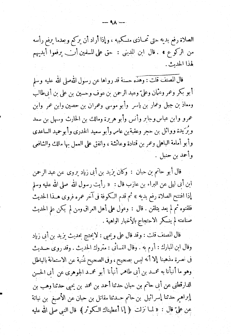 قَالَ ابْنُ الْمَدِينِيّ: حق على الْمُسلمين أَن يرفعوا أَيْديهم لهَذَا الحَدِيث.