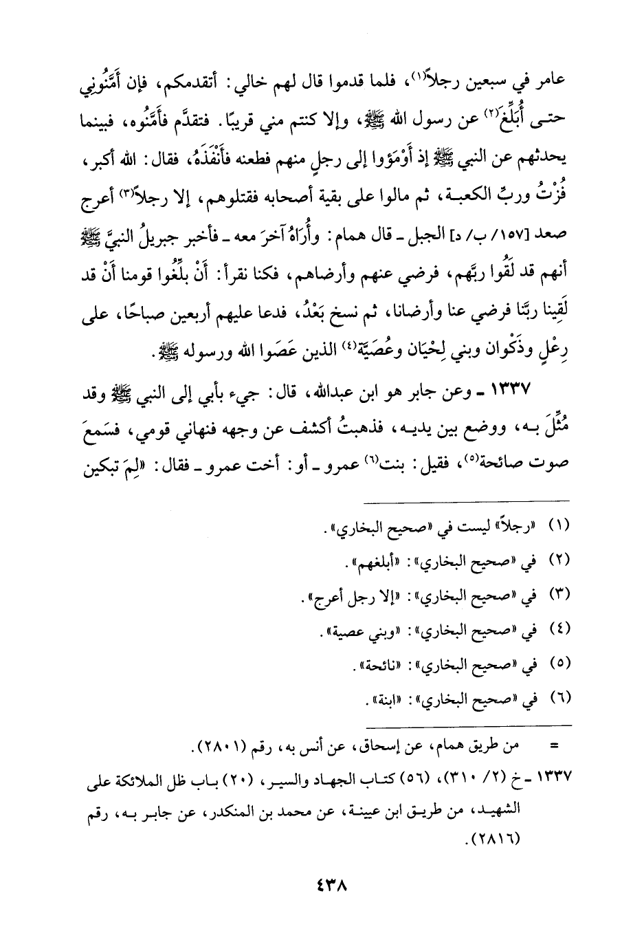 1337 - خ (2/ 310)، (56) كتاب الجهاد والسير، (20) باب ظل الملائكة على الشهيد، من طريق ابن عيينة، عن محمد بن المنكدر، عن جابر به، رقم (2816).