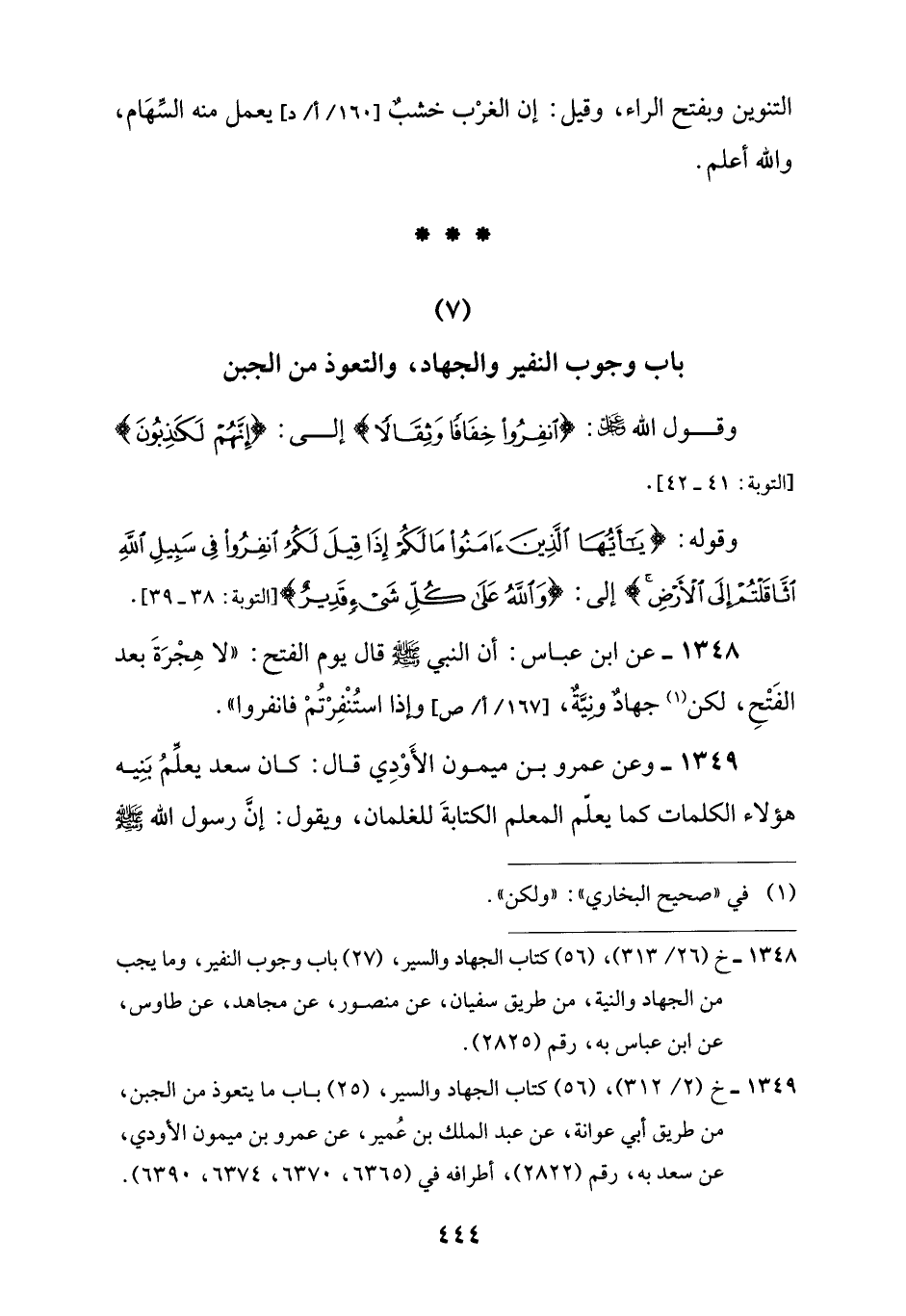 (7) باب وجوب النفير والجهاد، والتعوذ من الجبن