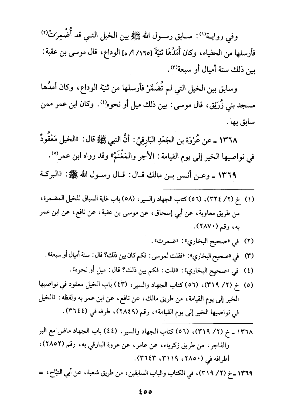 1368 - خ (2/ 319)، (56) كتاب الجهاد والسير، (44) باب الجهاد ماض مع البر والفاجر، من طريق زكرياء، عن عامر، عن عروة البارقي به، رقم (2852)، أطرافه في (2850, 3119, 3643).