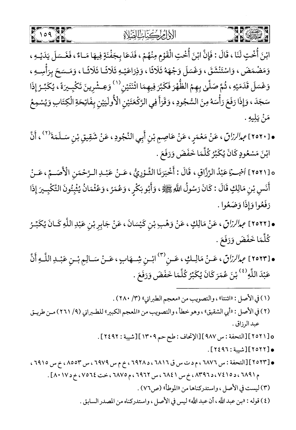 2523- عبد الرزاق، عَنْ مَالِكٍ، عَنِ ابْنِ شِهَابٍ، عَن سَالِمِ بْنِ عَبدِ اللهِ، أَنَّ عَبدَ اللهِ بن عُمَرَ كَانَ يُكَبِّرُ كُلَّمَا خَفَضَ وَرَفَعَ.