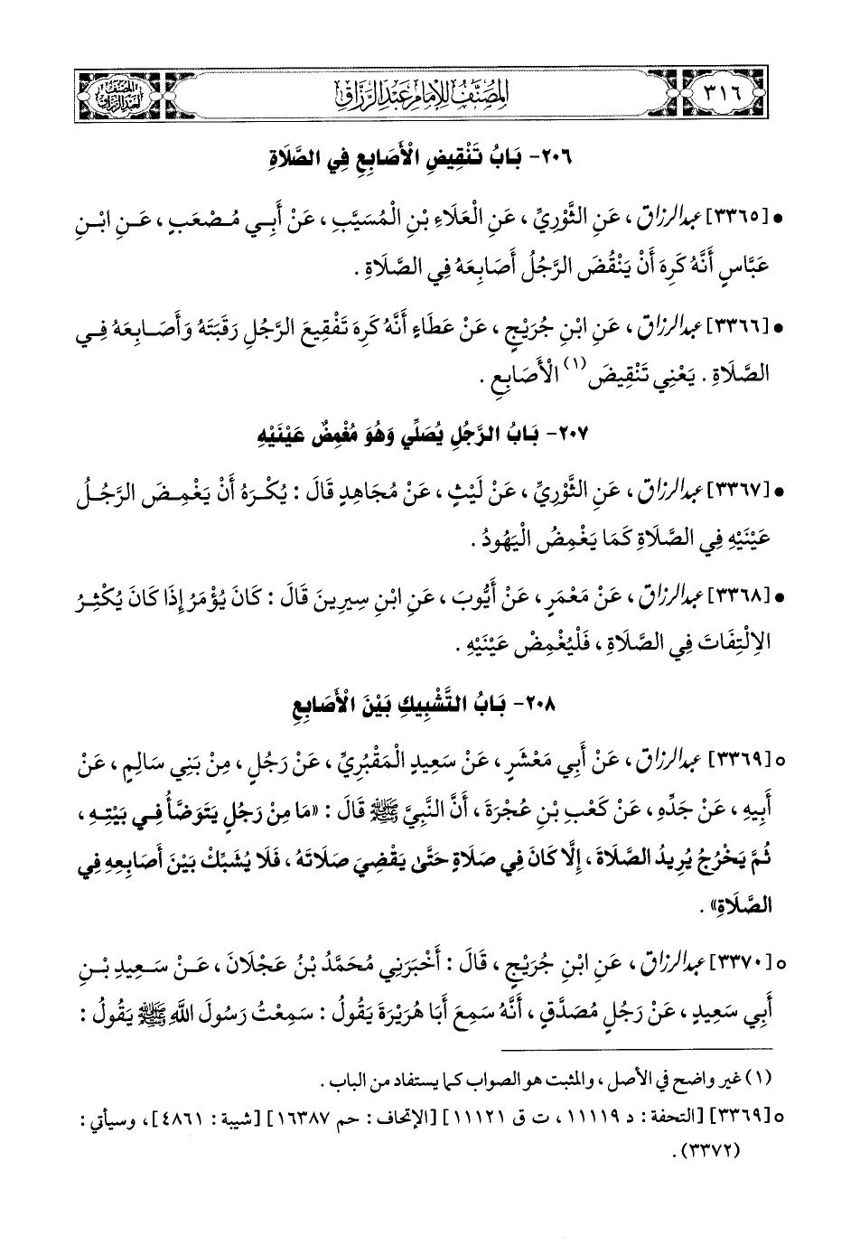 3366- عبد الرزاق، عَنِ ابْنِ جُرَيْجٍ، عَنْ عَطَاءٍ، أَنَّهُ كَرِهَ تَفْقِيعَ الرَّجُلِ رَقَبَتَهُ وَأَصَابِعَهُ فِي الصَّلاَةِ، يَعْنِي تَنْقِيضَ الأَصَابِعِ.