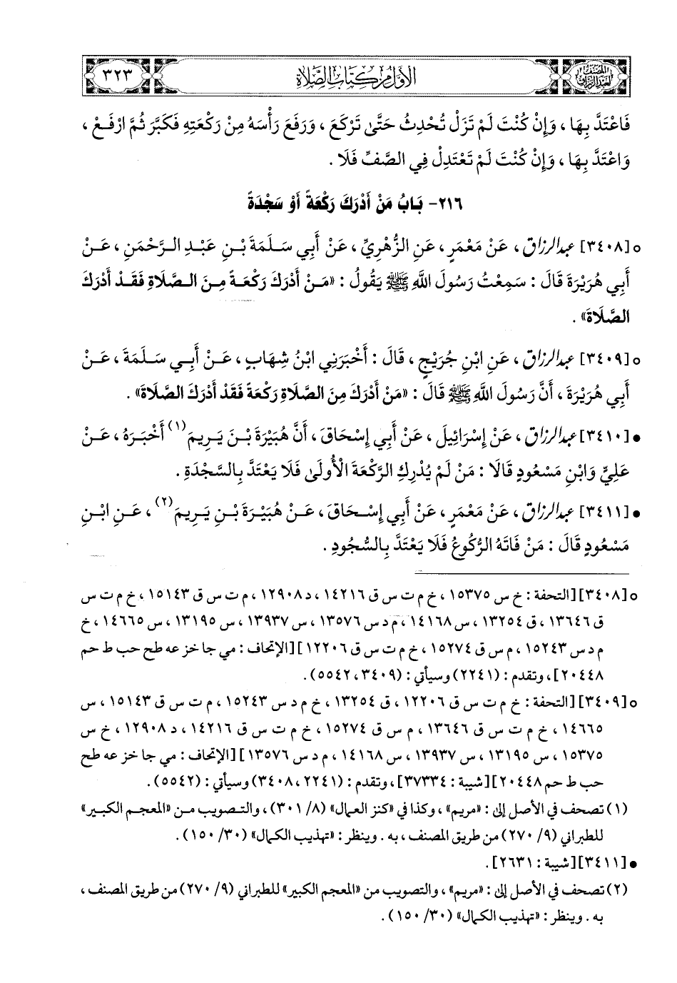 3408- عبد الرزاق، عَنْ مَعْمَرٍ، عَنِ الزُّهْرِيِّ، عَنْ أَبِي سَلَمَةَ بْنِ عَبدِ الرَّحْمَنِ، عَنْ أَبِي هُرَيرَةَ، قَالَ: سَمِعْتُ رَسُولَ اللهِ صَلَّى اللهُ عَلَيْهِ وَسَلَّمَ يَقُولُ: مَنْ أَدْرَكَ رَكْعَةً مِنَ الصَّلاَةِ فَقَدْ أَدْرَكَ الصَّلاَةَ.