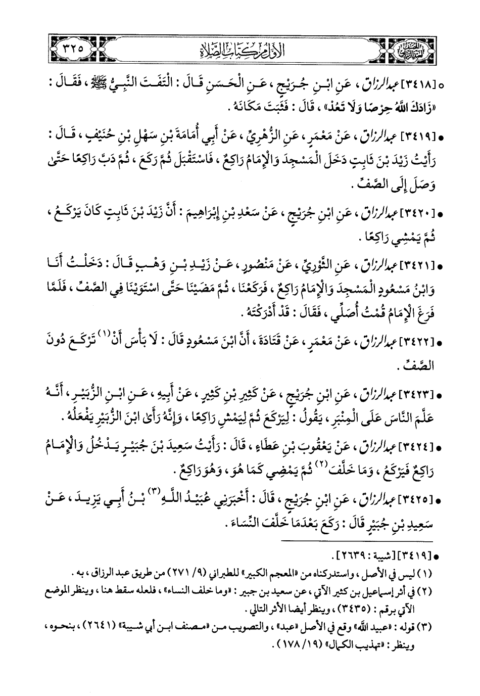 3419 - عبد الرزاق، عَنْ مَعْمَرٍ، عَنِ الزُّهْرِيِّ، عَنْ أَبِي أُمَامَةَ بْنِ سَهْلِ بْنِ حُنَيْفٍ قَالَ: رَأَيْتُ زَيْدَ بْنَ ثَابِتٍ دَخَلَ الْمَسْجِدَ وَالإِمَامُ رَاكِعٌ، فَاسْتَقْبَلَ ثُمَّ رَكَعَ، ثُمَّ دَبَّ رَاكِعًا، حَتَّى وَصَلَ إِلَى الصَّفِّ (1).