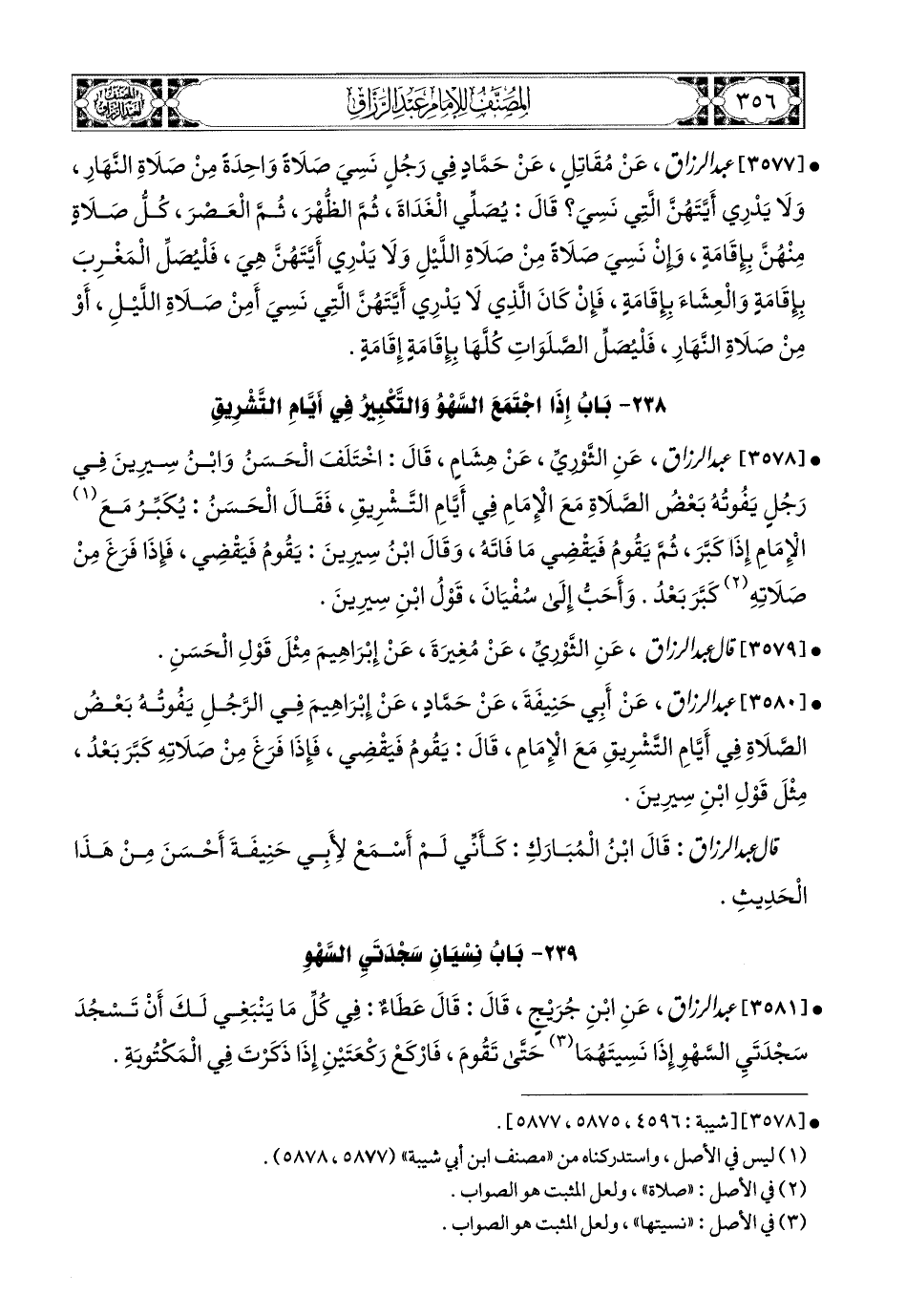 3579- قَالَ عَبْدُ الرَّزَّاقِ: عَنِ الثَّورِيِّ، عَن مُغِيرَةَ، عَن إِبرَاهِيمَ، مِثْلَ قَوْلِ الْحَسَنِ.